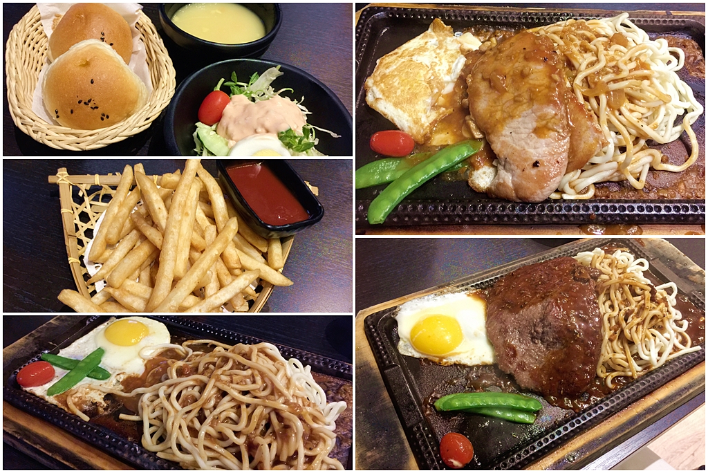 #84 炸薯條80元、鐵板麵80元、豬排120元、沙朗牛排180元(排餐都有附餐包、濃湯、沙拉)、飲料喝到飽,價格實惠,讚!