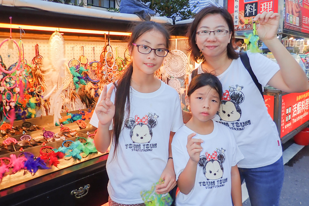 #108 林家姊妹各買了一個捕夢網吊飾(玩了一天下來,妹妹已經又累又餓了)。