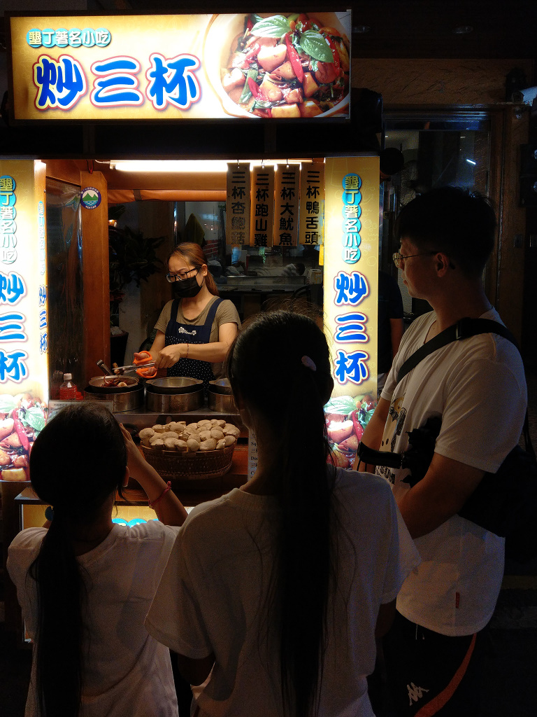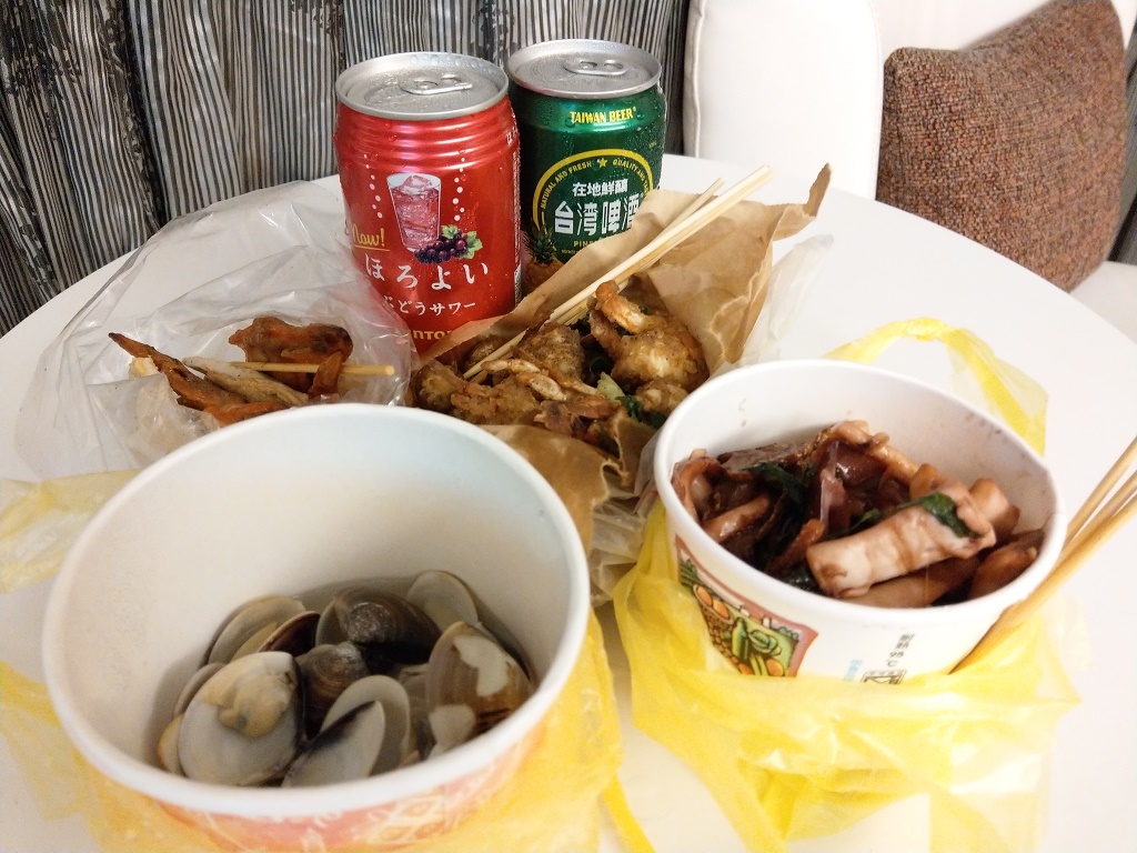 算一算,這是我們在墾丁大街吃最多、消費最多的一次:杯杯義大利麵、三杯大魷魚、一口蟹、現烤蛤蜊、深坑臭豆腐、骰子牛肉、10元燒烤、打洞飛魚卵香腸、霜淇淋、夯雞排、水果啤酒...