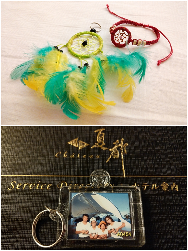 #116 林家姊妹買的捕夢網吊飾和夏都酒店免費提供的照片鑰匙圈。