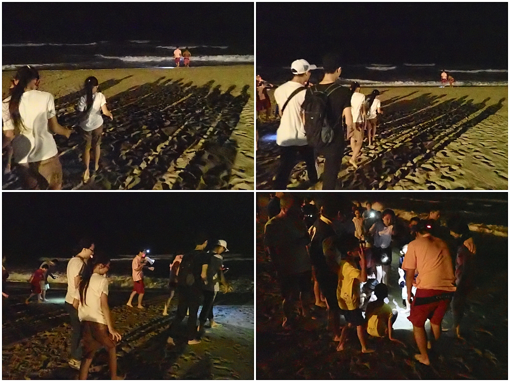 #118 九點前到戶外泳池旁集合,由夏都酒店工作人員帶領大家夜訪沙蟹。