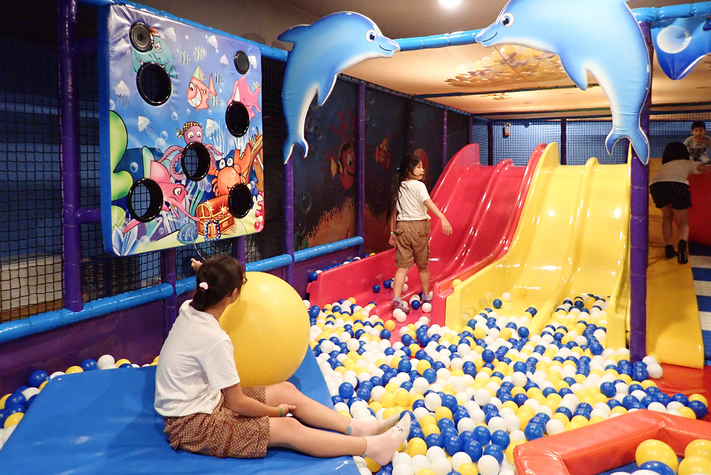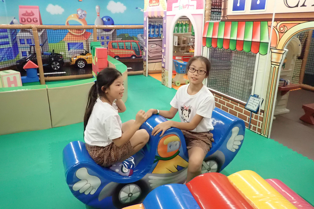 #87 普羅館地下一樓有「夏都星樂園」,看來這裡比較適合小小孩來玩,但是林家姊妹一樣玩得很開心。