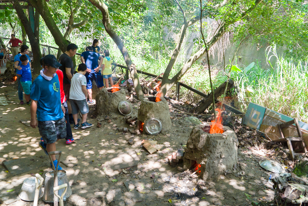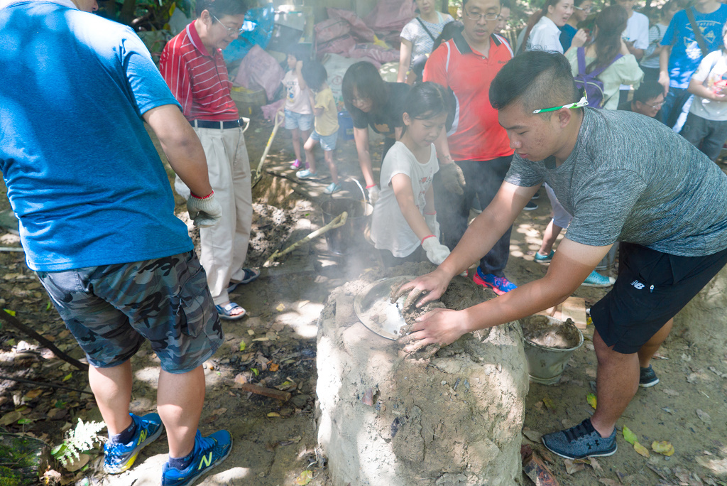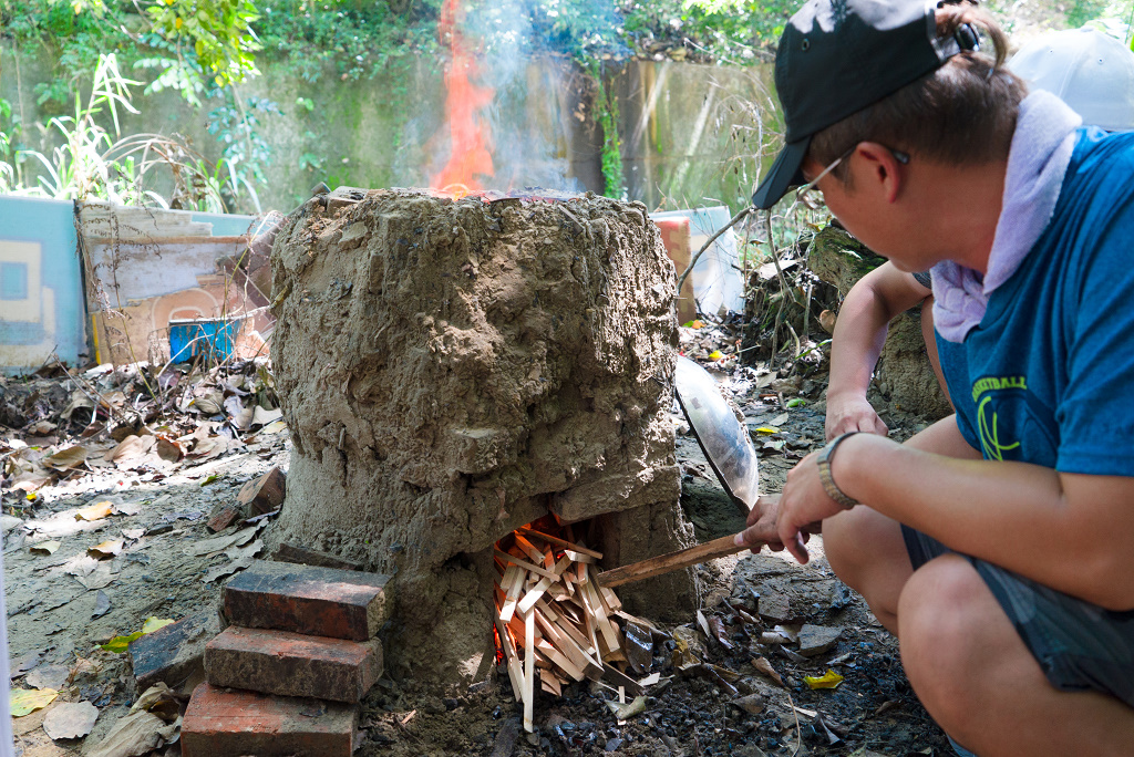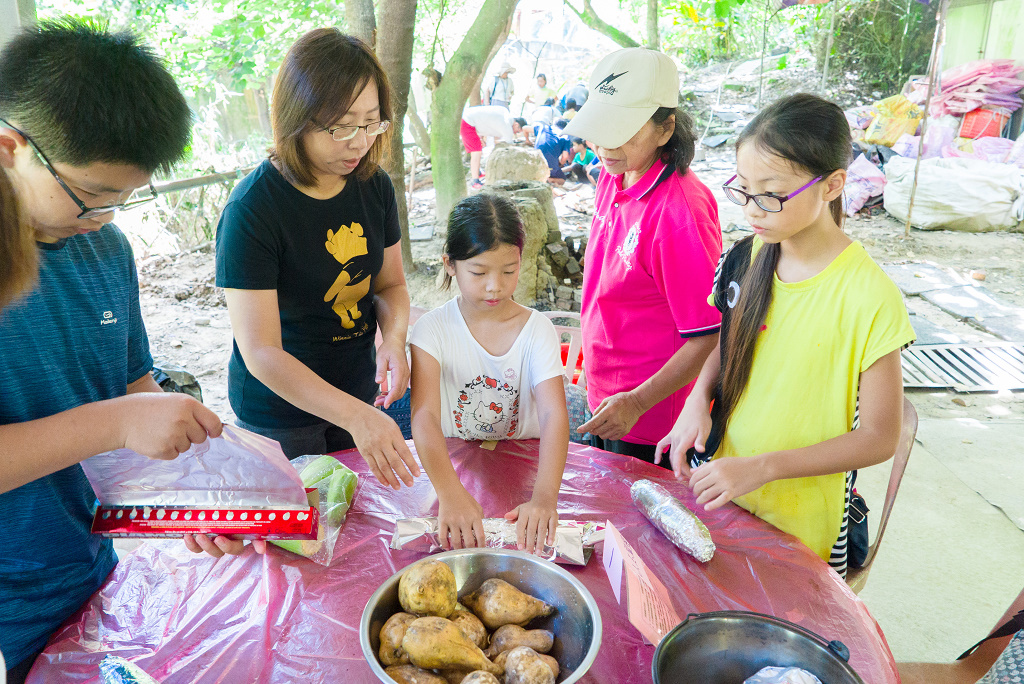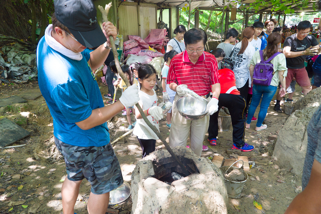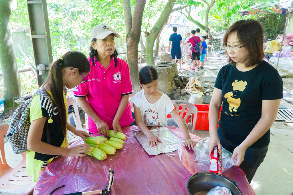 #2 集合分組之後,第一個活動就是升火搭窯、和泥巴/包食材、爆米花體驗。