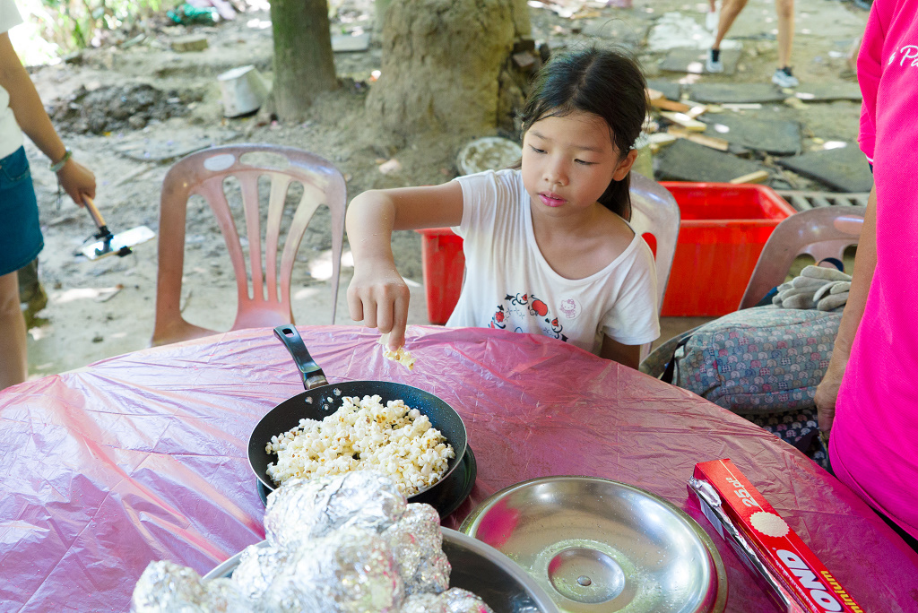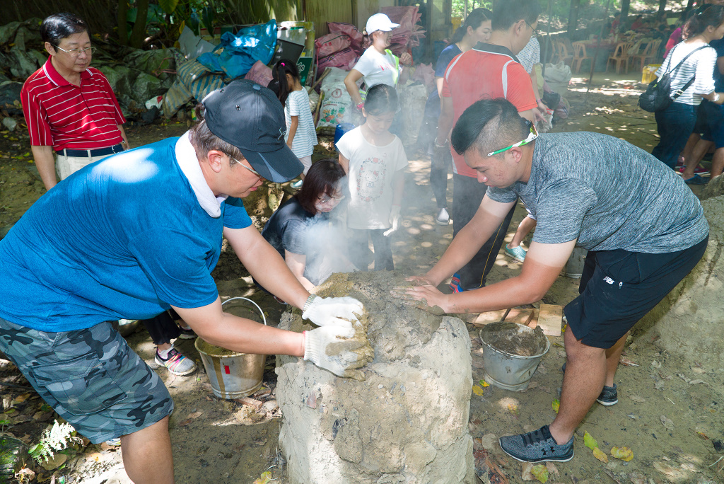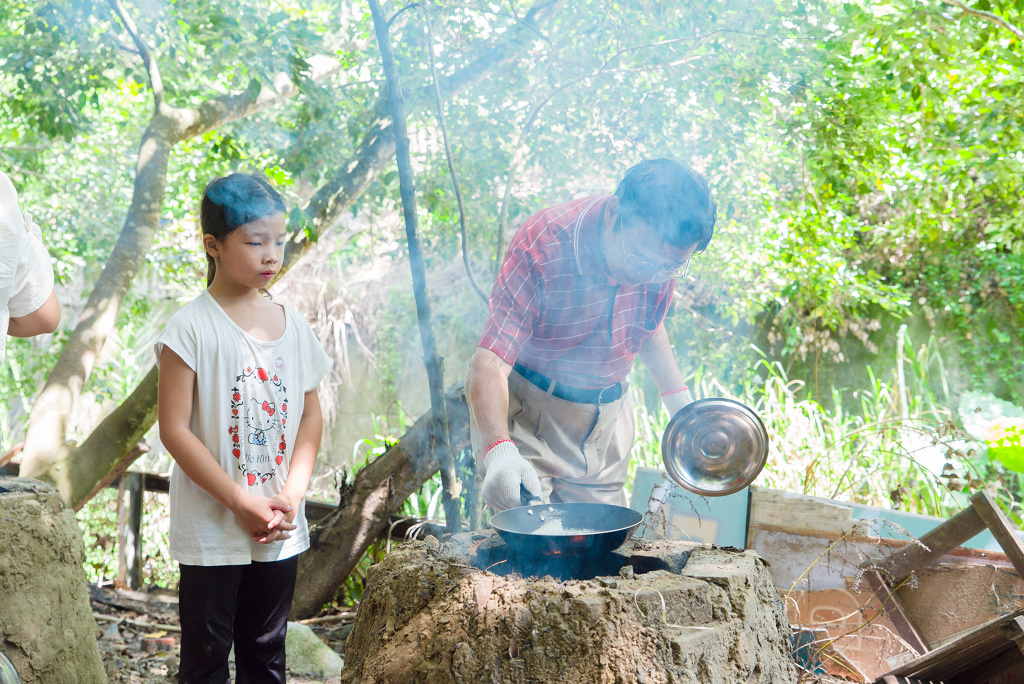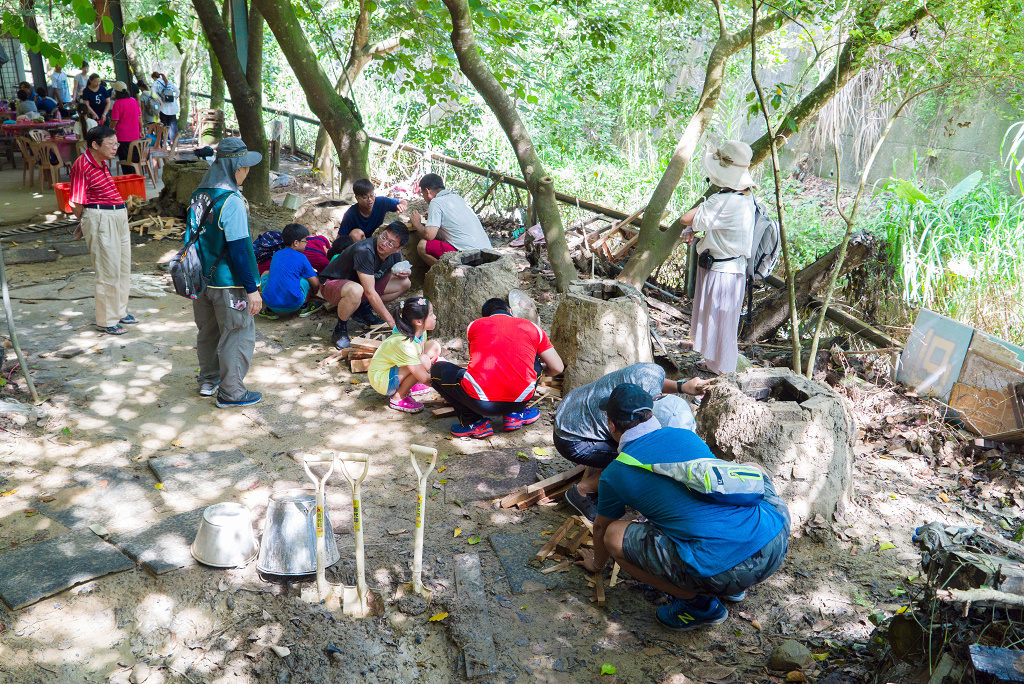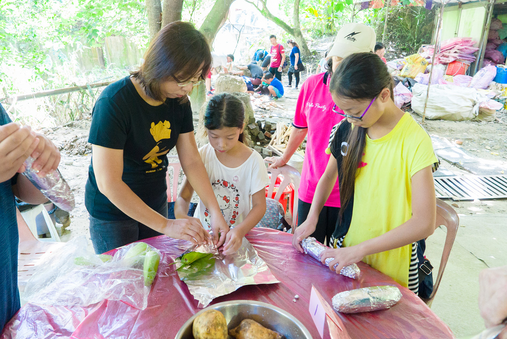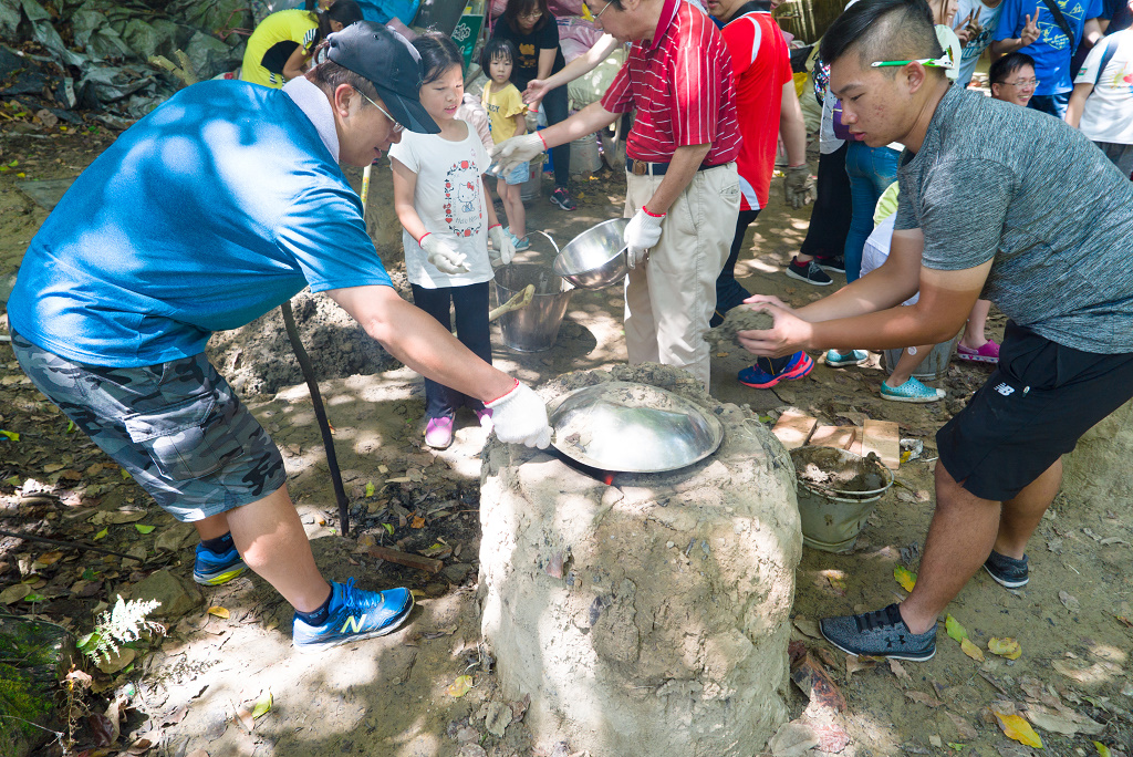 #2 集合分組之後,第一個活動就是升火搭窯、和泥巴/包食材、爆米花體驗。