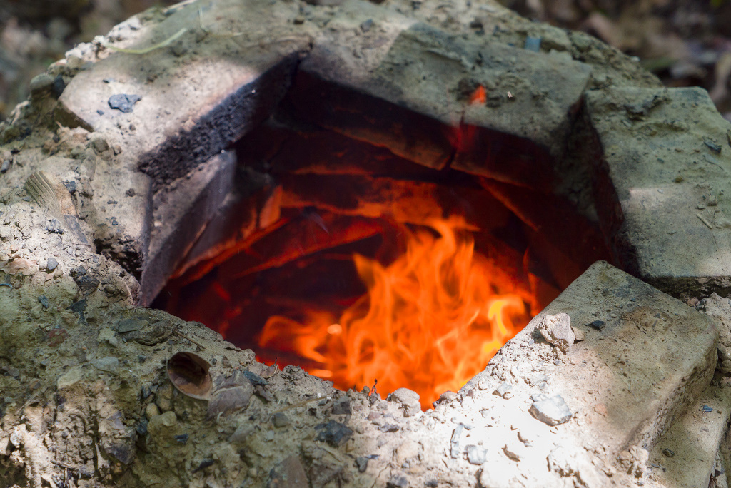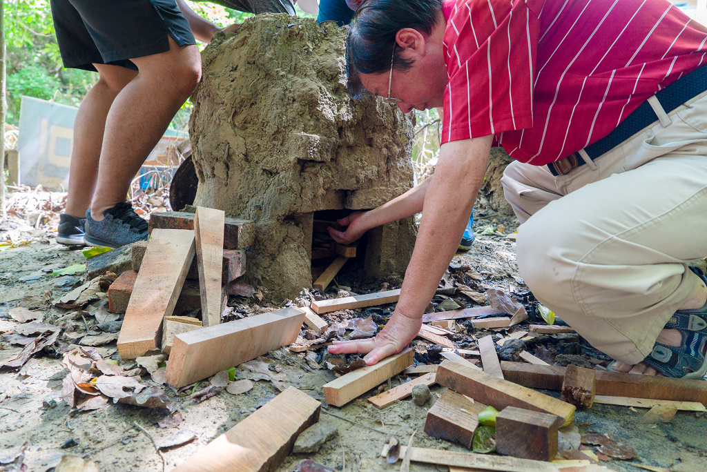 #22 各組的火都很旺了,要燒到土窯的內部呈現白色才算完成~
