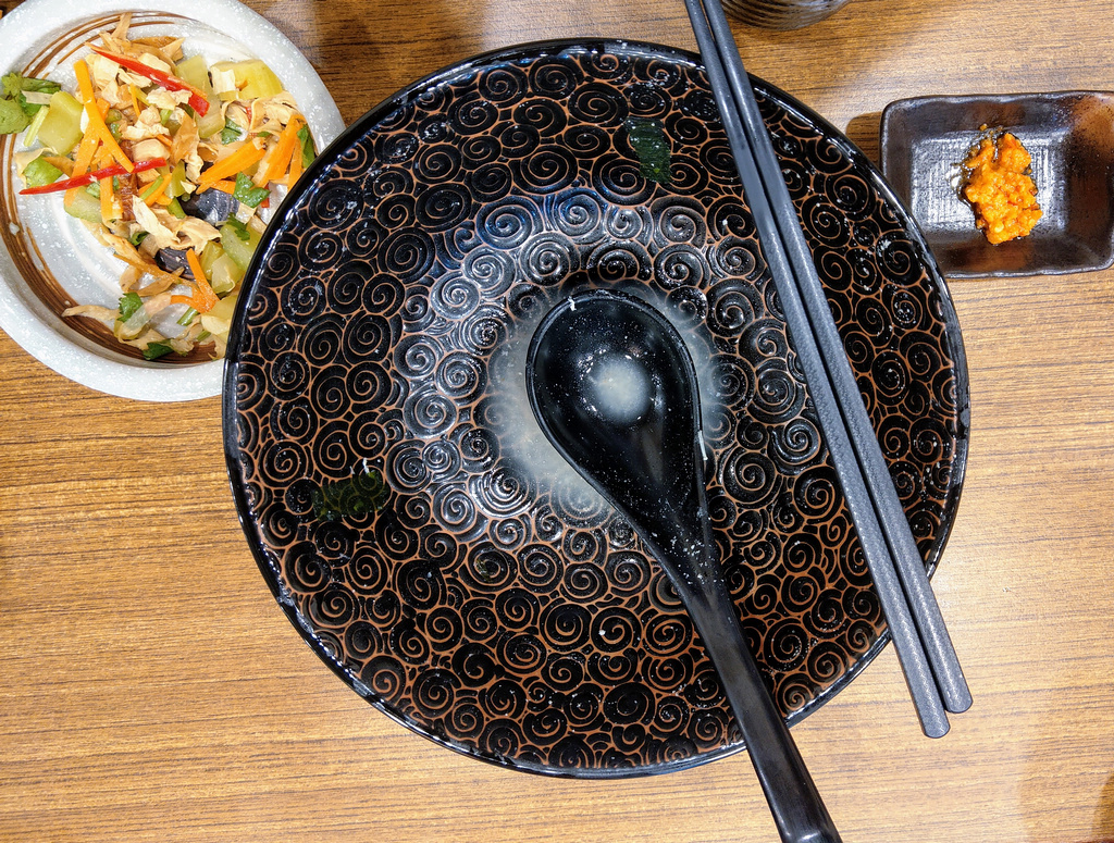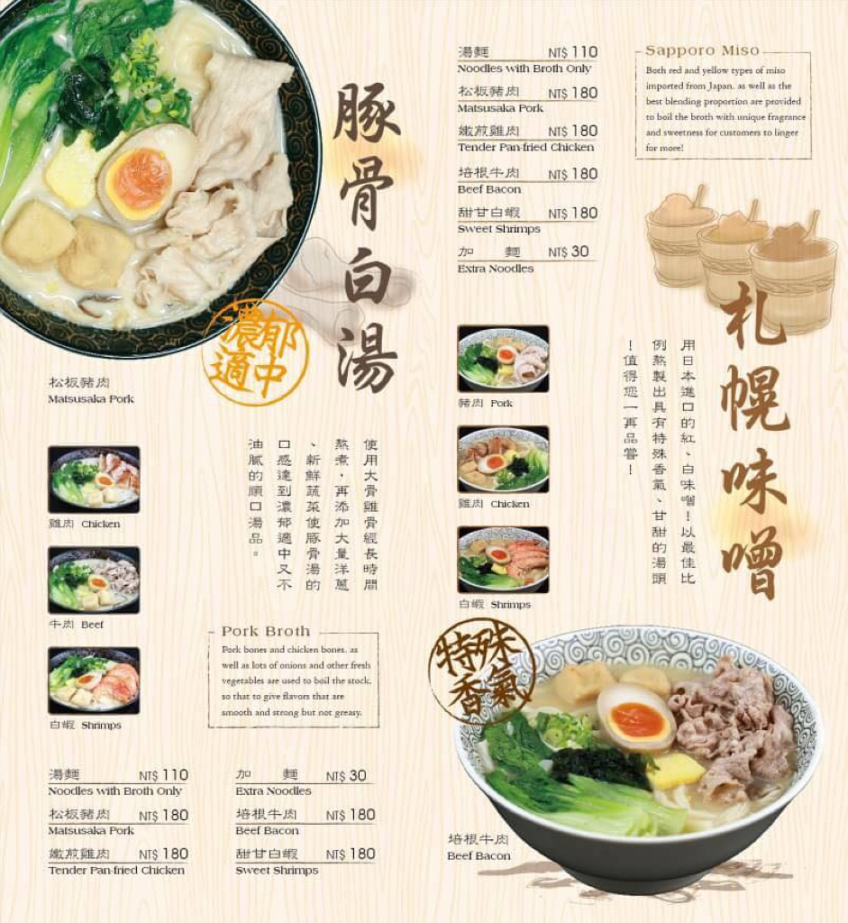 大骨雞骨經長時間熬煮,加上大量洋蔥和新鮮蔬菜使豚骨湯喝起來口感濃郁適中又不油膩。