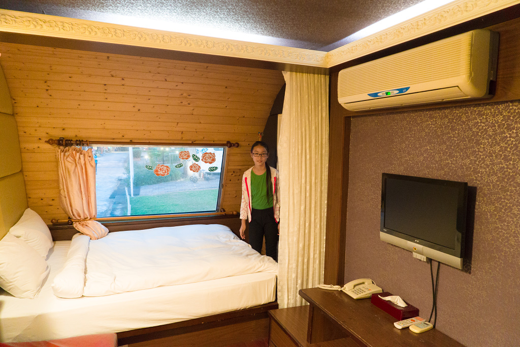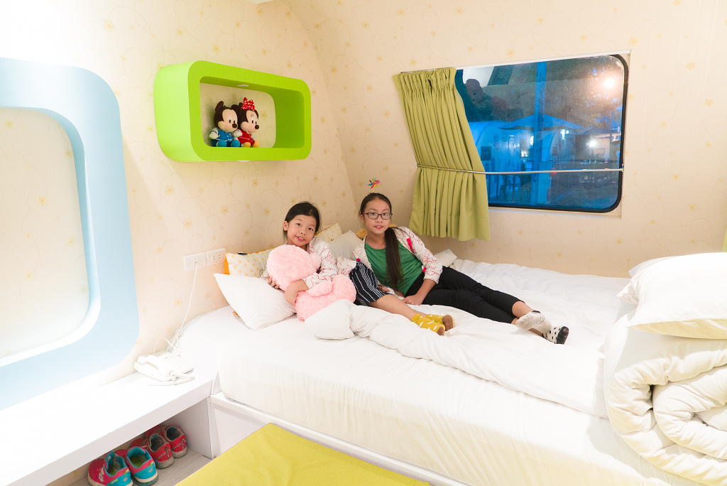 我們早就知道這個地方很難訂,所以早在八月底看到團購網跳出訂房優惠專案,馬上就下手訂了兩間(一間雙人房,一間四人房),帶全家來去體驗一次露營車。(車子要停到停車場,會有服務人員開高爾夫球車來接駁房客與行李。)