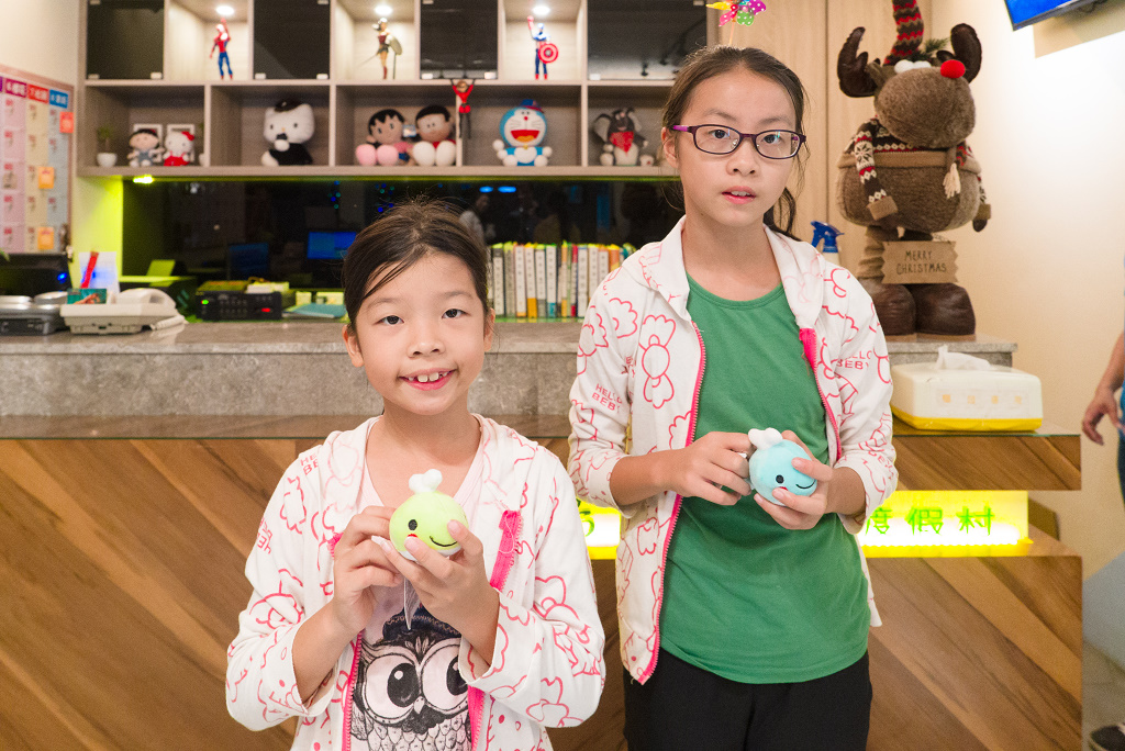 #86 兩個小朋友都戳到鯨魚小玩偶。