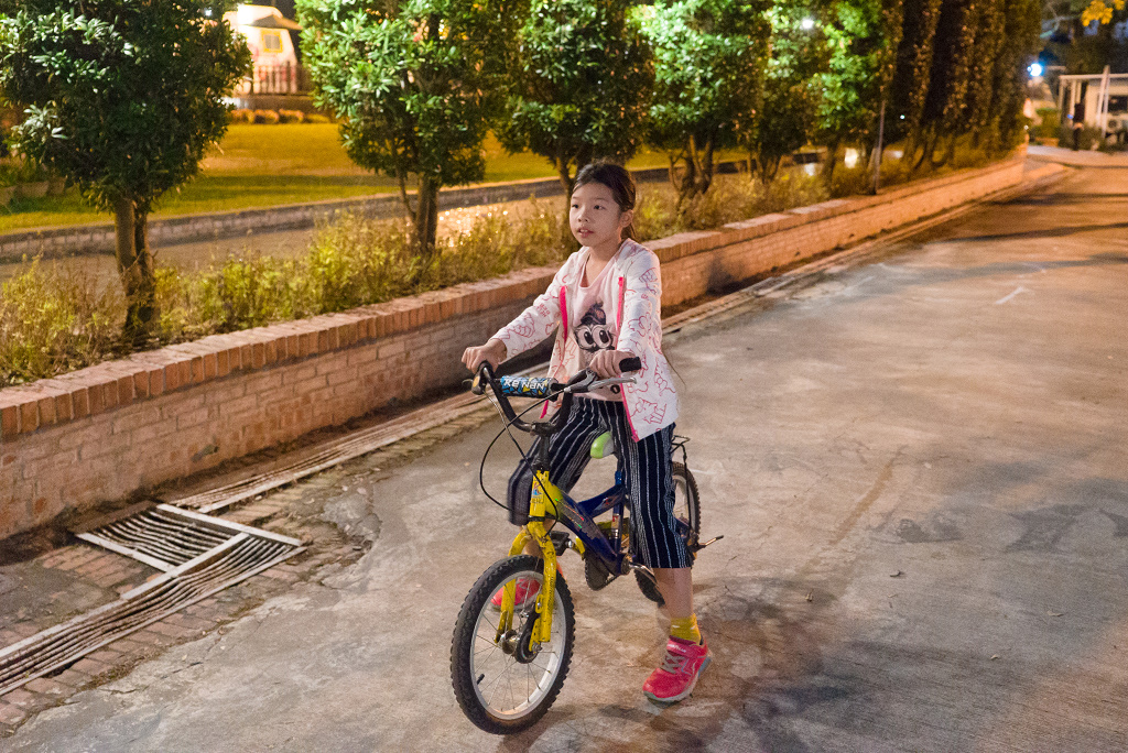 #87 渡假村內可以免費借腳踏車,妹妹早就等不及借來騎了。