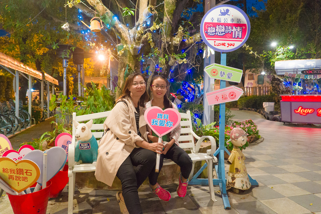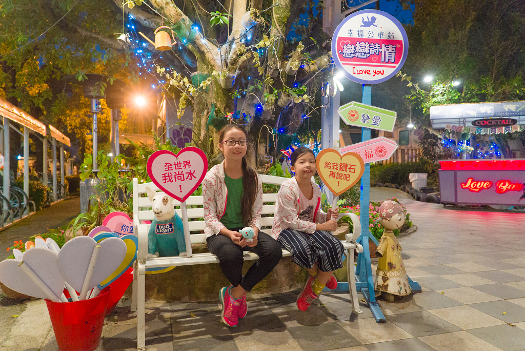 #88 園區裡設計了浪漫的場景,提供旅客們拍照留念,處處充滿夢幻情境,像是甜蜜愛情酒吧、幸福公車站、濃情蜜意大愛心、浪漫滿屋等。