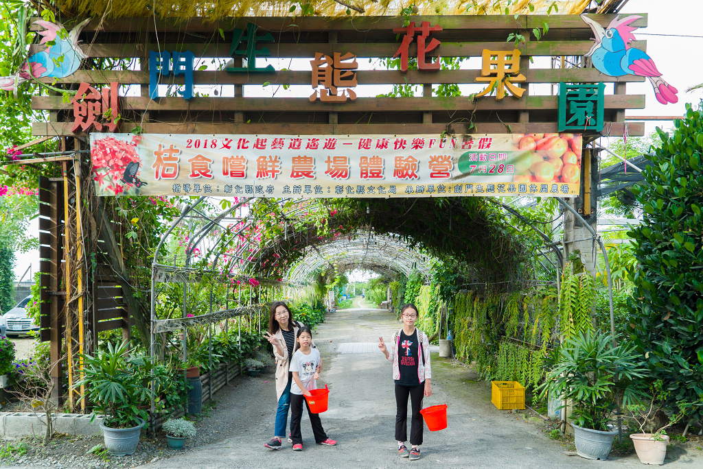 位於彰化縣大村鄉的劍門生態花果園,是從1923年即開始從事專業柑桔生產的果園。現在已經家傳四代,目前由61歲的賴柏培及34歲的兒子賴仲由專業經營。