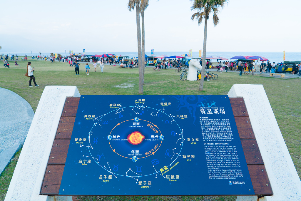 #27 七星潭原本位於今日花蓮機場東側位置,為南北縱向長條湖泊,北端為L型勺口,南端為勺柄,整體約略類似北斗七星,故名七星潭。1936年日據時期,日本當局為了建設花蓮港北飛行場(現今的花蓮機場)就填平了七星潭,現今只剩約四個零星湖泊。