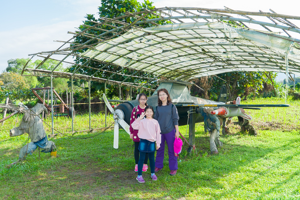 #4 生態農場後方就是大全鎮平機堡公園,於民國103年,大全村的居民在機堡原址營造完成「機堡公園」,用洗澡臉盆、電扇、還有公路施工用的三角椎製作幾可亂真的零式戰鬥機。