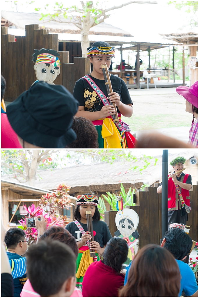 #77 兩位可愛的阿美族女孩會在遊客當中一邊緩緩移動,一邊用鼻笛表演,讓遊客可以近距離感受鼻笛的美妙聲音。
