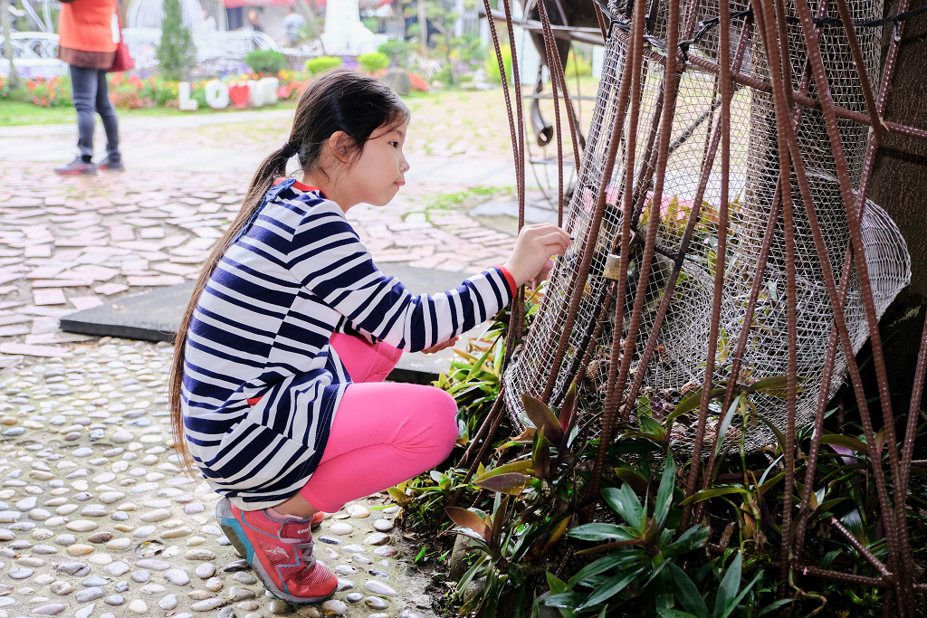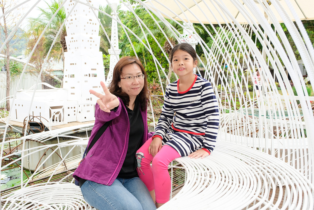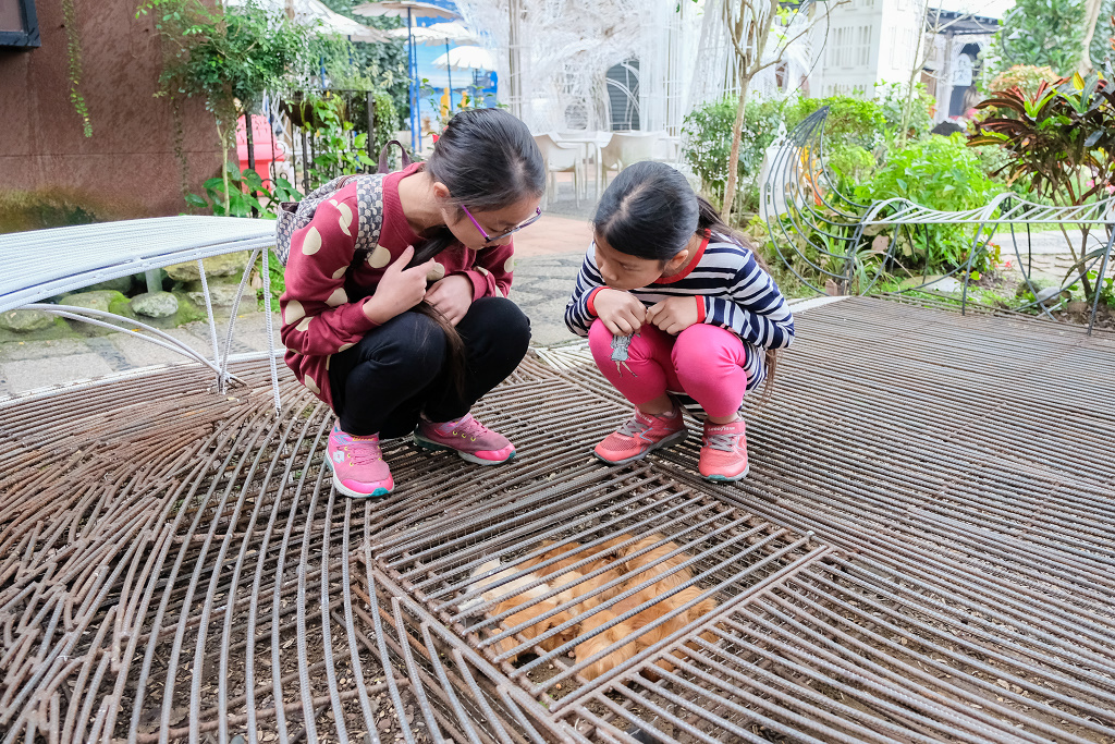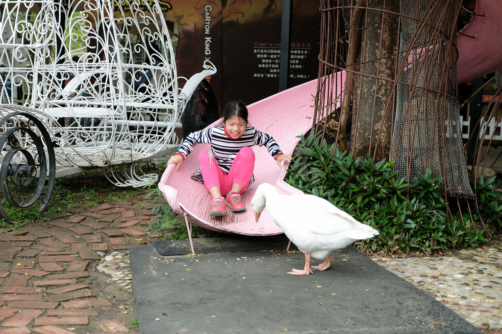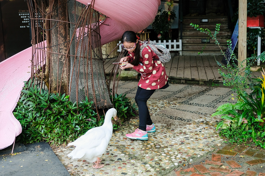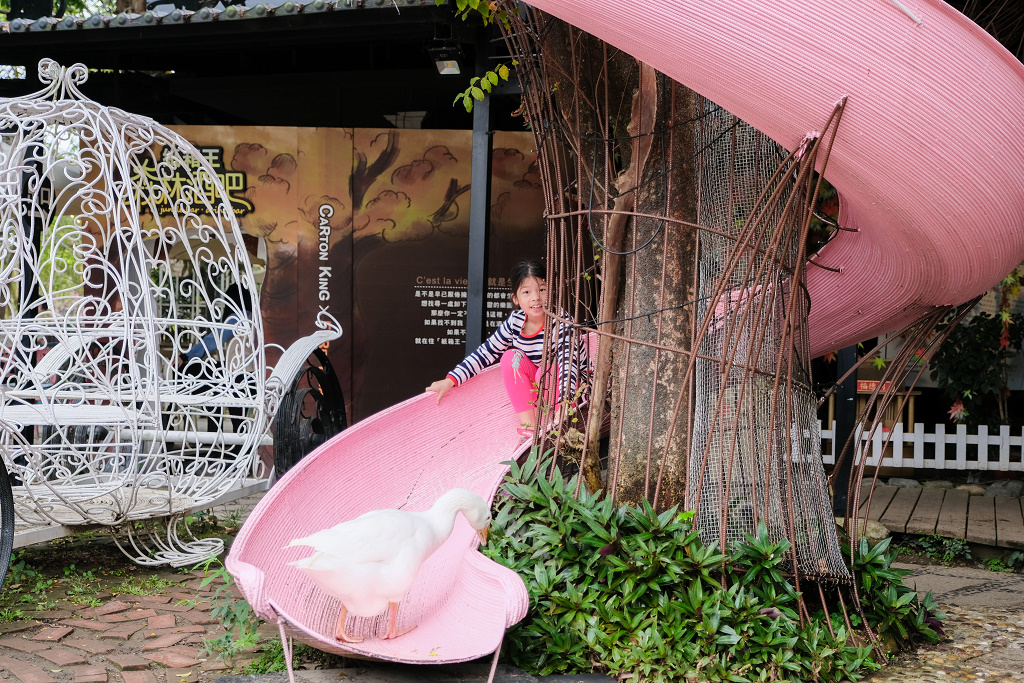 #4 一進入園區就受到這隻鵝的「熱烈歡迎」,妹妹還嚇到躲在溜滑梯上。