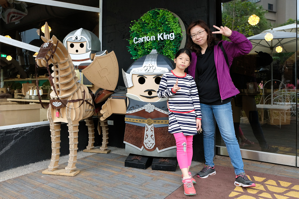 位於大坑的紙箱王創意園區於2018年8月初慘遭祝融,餐廳和蜜蜂故事館燒毀,紙造的羅馬競技場和台北101造景也被燒掉,歷經一個多月修復後重新開張。這一天是我們家在重新開張之後的第一次造訪,外國遊客(自由行)非常多!