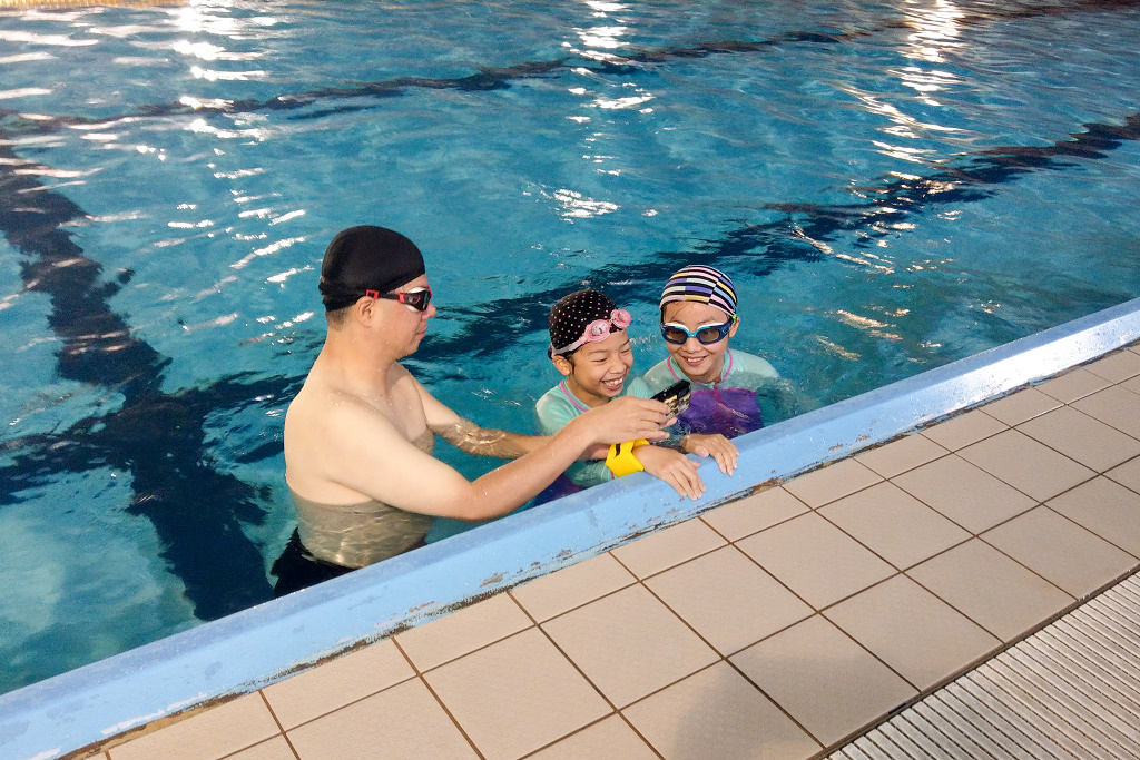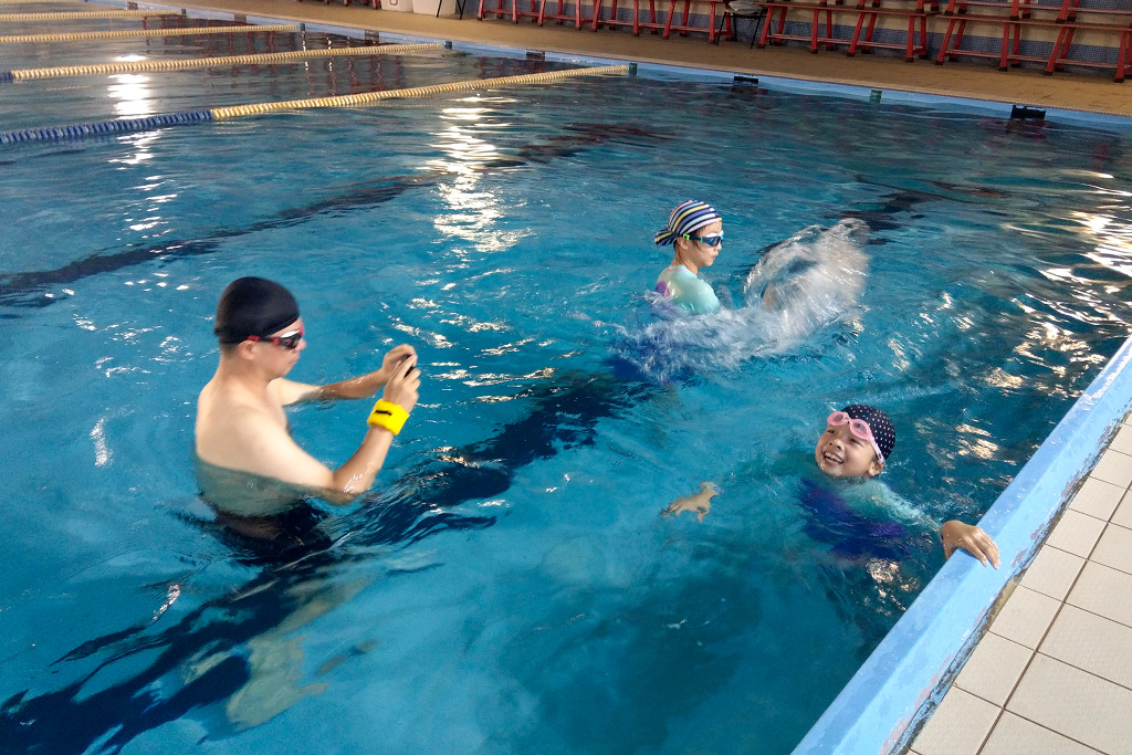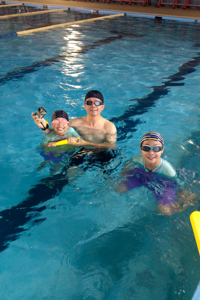 林家姊姊的目標是自由式25公尺、學會仰漂,而且也會換氣了。林家妹妹無師自通的蛙式越來越純熟也會換氣了。