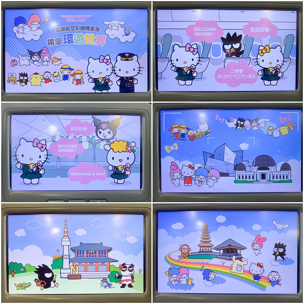 #10 這次的彩繪機經濟艙也有個人螢幕,這一點是小朋友最高興的,尤其是一登機上面就開始播放三麗鷗家族的歡迎畫面,感覺很棒!