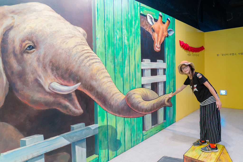 #56 「愛來魔相藝術館」,韓國首家3D藝術展館集團,在韓國擁有濟州中文館、城邑館、N首爾塔館及仁寺洞館等8家分館,並於中國、越南、泰國及土耳其等地共設有6家海外分館。於2014年3月6日開館的仁寺洞總館占地面積3300平方公尺,是目前韓國最大的4D體驗美術館。場館由地下一樓(世界奇幻穿梭盒)、地下二樓、黑色任務及甜豆所咖啡廳組成,感覺就是把台灣流行了好一陣子的3D彩繪村整個搬進地下室(韓國人怎麼好像很喜歡往地底下發展,而且地下建築規模都超大的...),這樣就不怕氣候因素影響了。