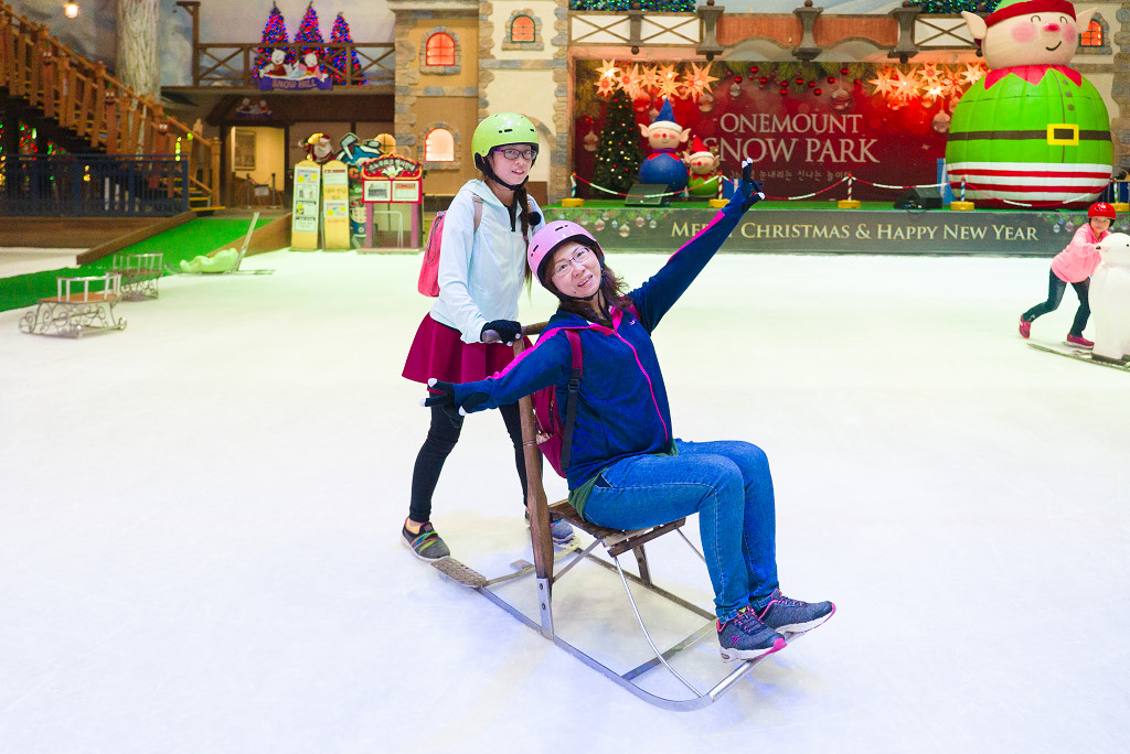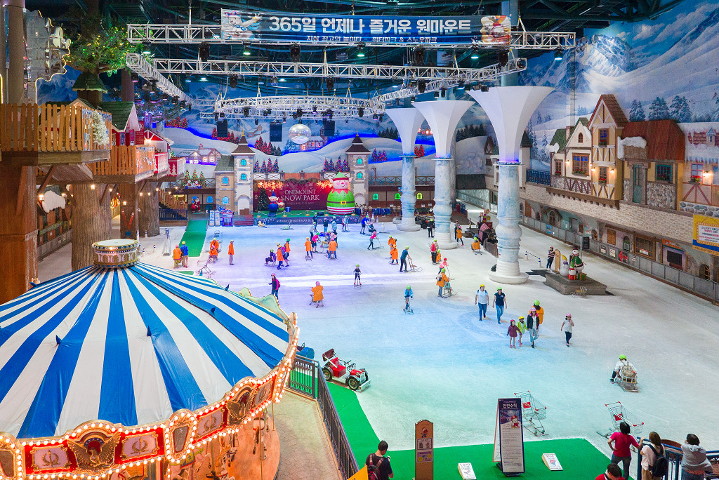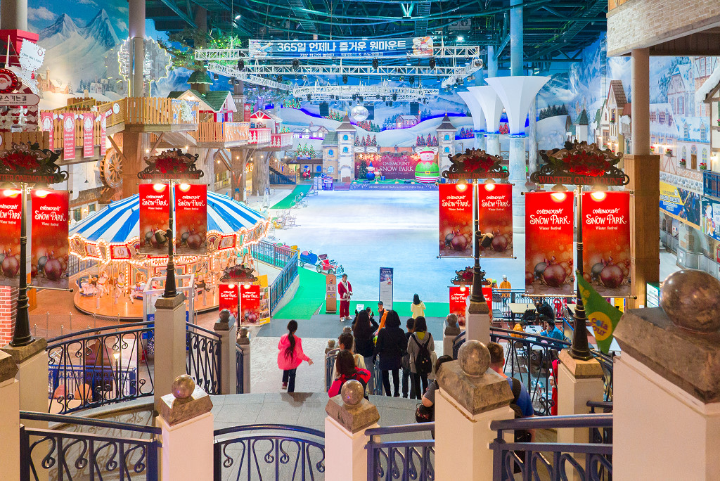 ONEMOUNT冰雪樂園是韓國國內最早的冬季室內主題樂園,多種冰雪體驗在這裡都可以一次享受。室內仿造北歐聖誕村風格,有特色雪橇、溜冰場、7種主題洞窟、浪漫的冰之路、會降雪的雪之丘等,相當豐富。