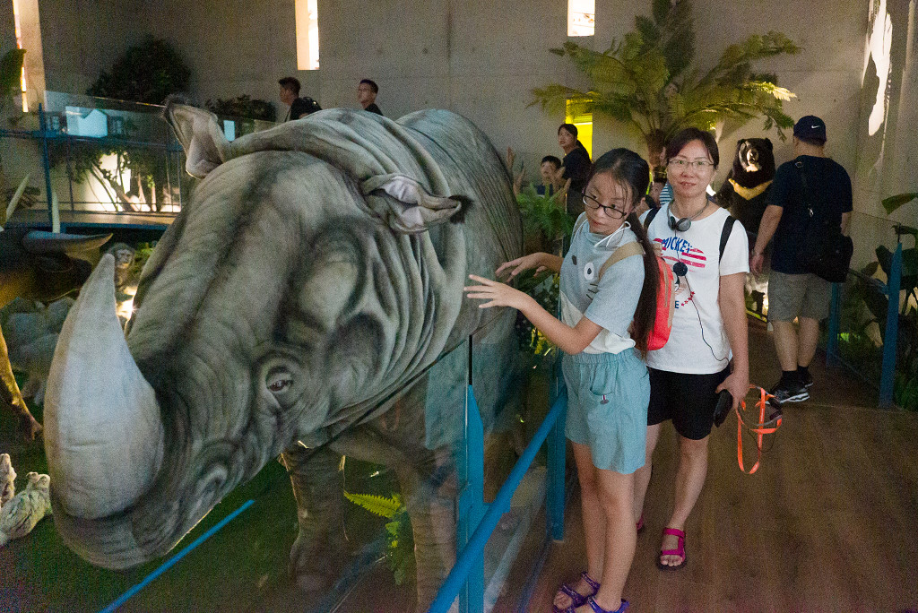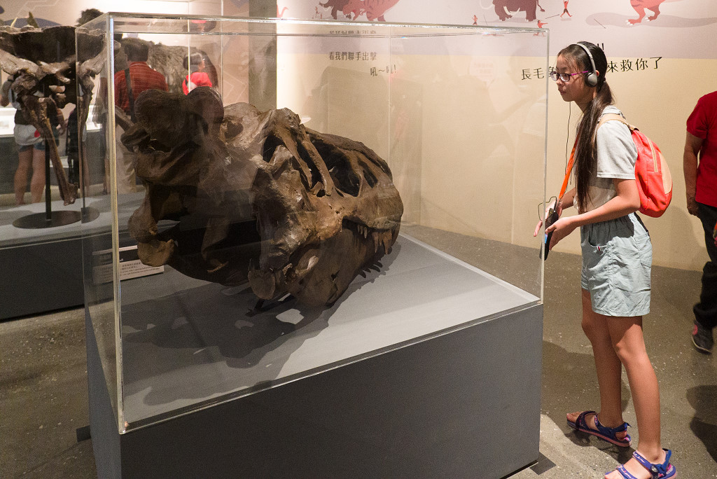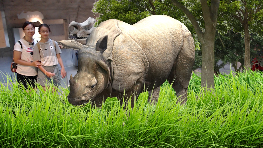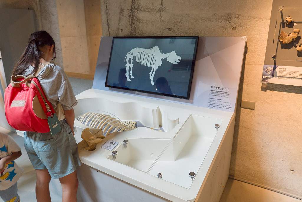 #45 最引人注目的就是早坂中國犀全身骨架化石,還可以透過現代科技現場和它拍照留念喔!