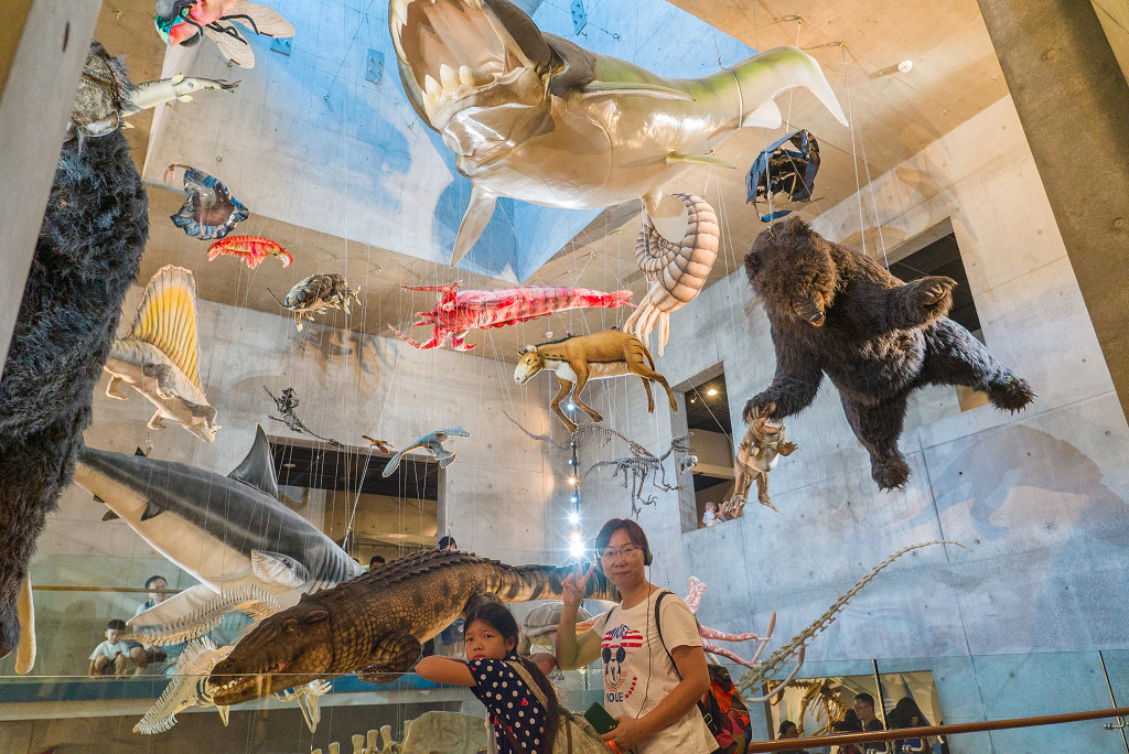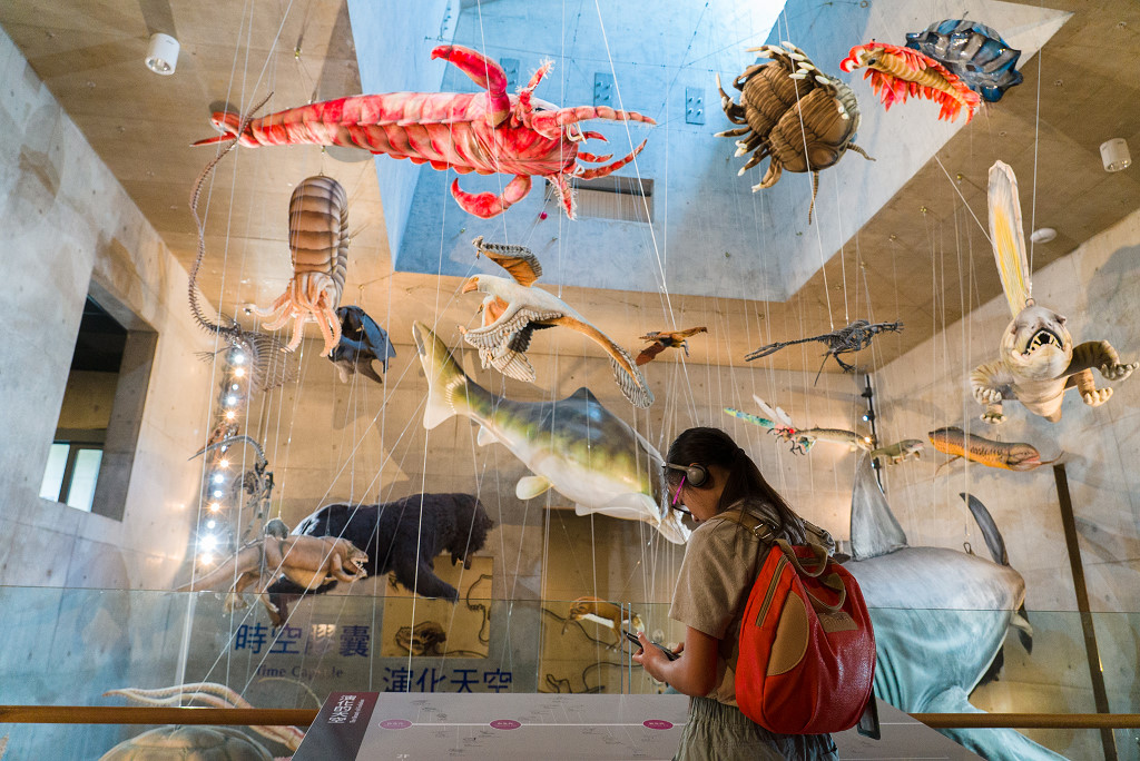 #10 生命演化館呈現海洋生物的搶灘戰,曾經稱霸地球的恐龍坐落在中庭,之後哺乳動物崛起於歷史舞台,見證生命演化的繁盛與衰落。