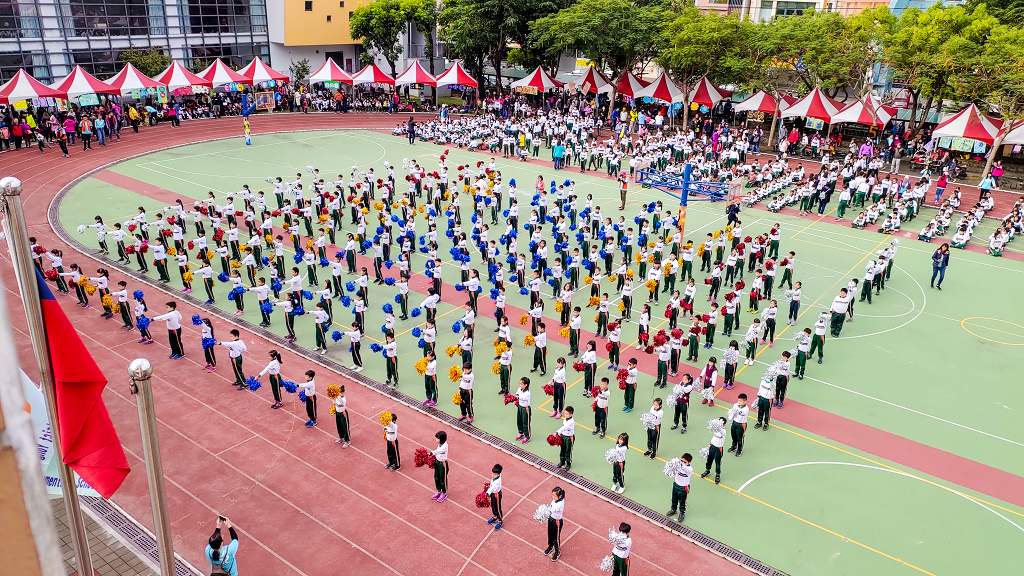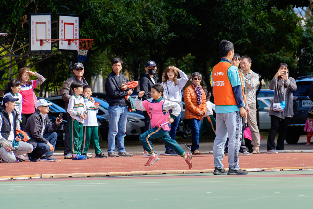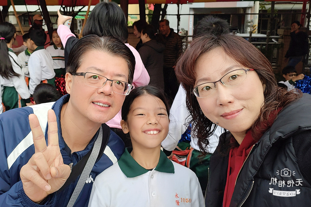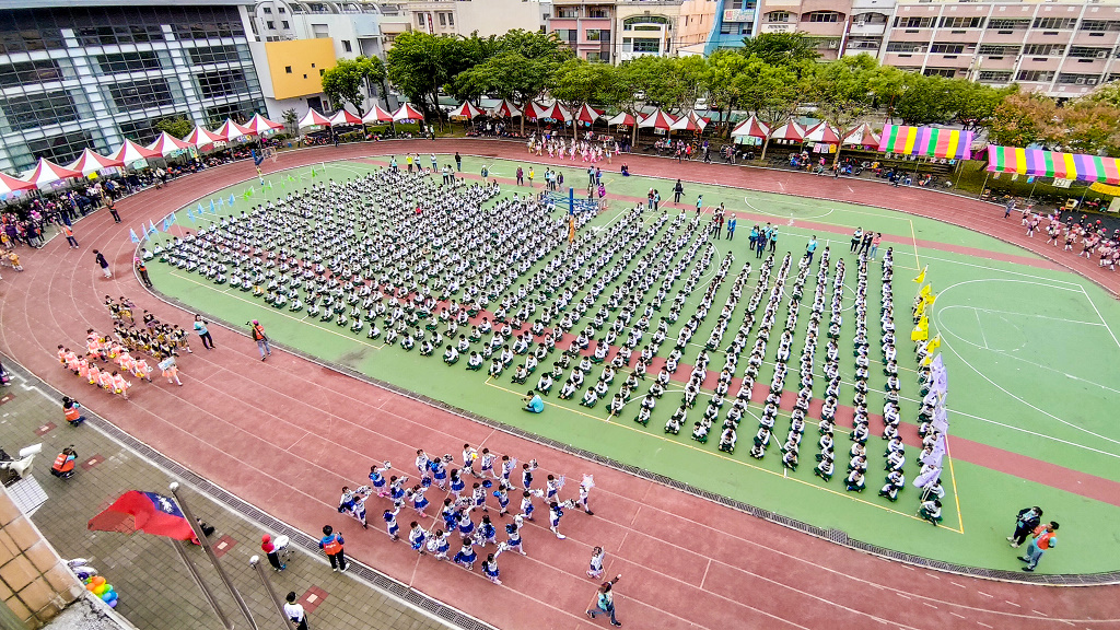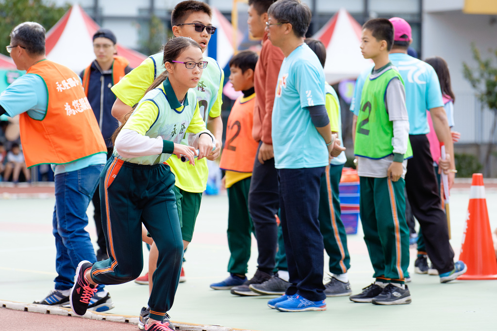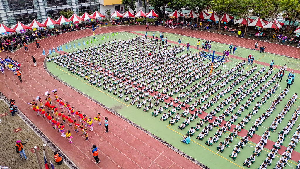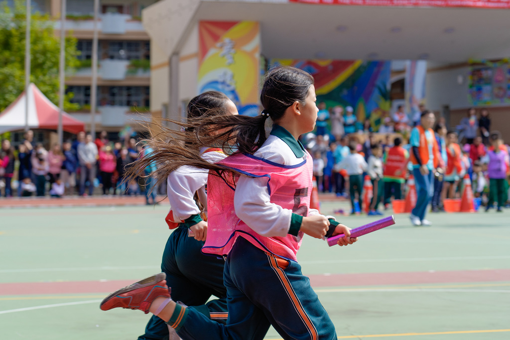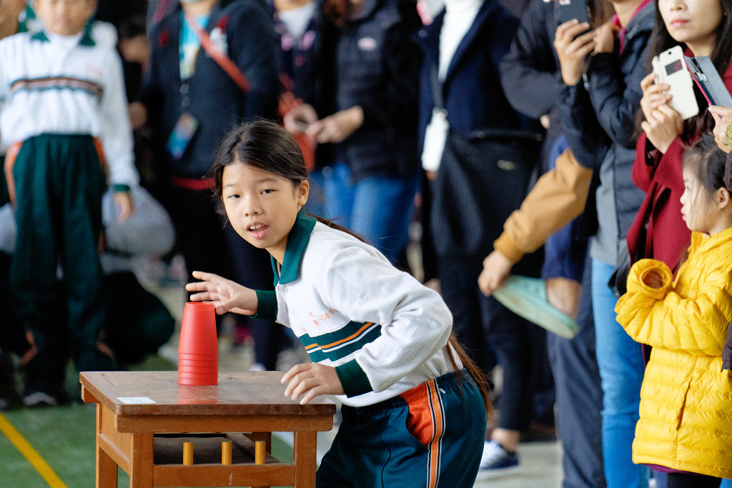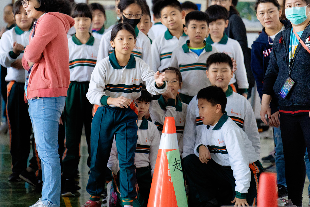 #41 林家姊姊的班級獲得趣味競賽第一名、大隊接力第一名、運動總錦標第二名,導師興奮地把錦旗綁在班旗上。