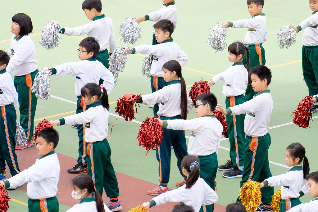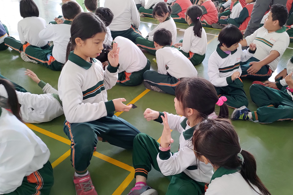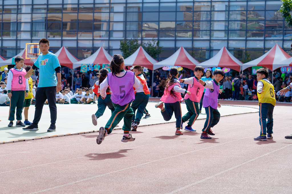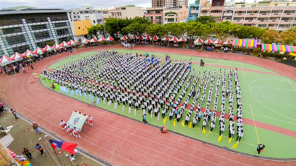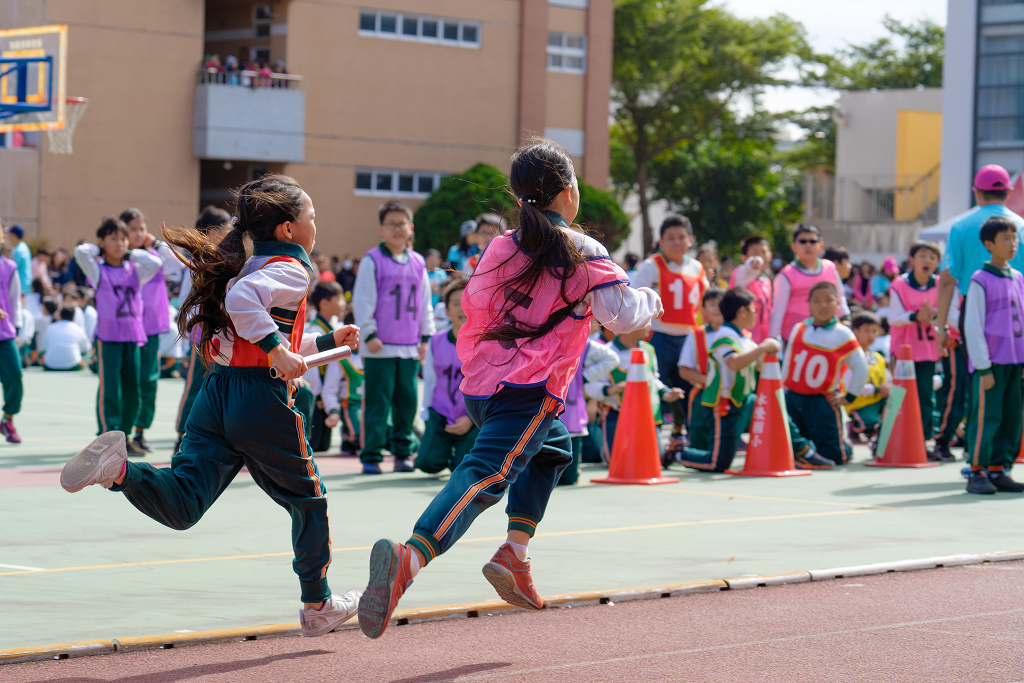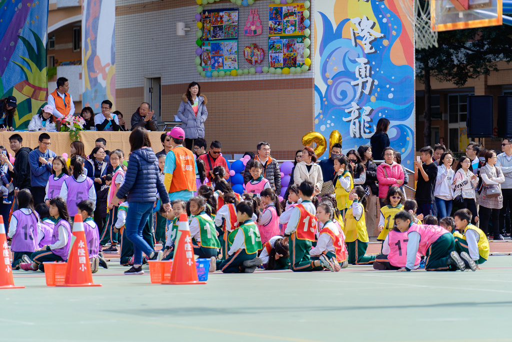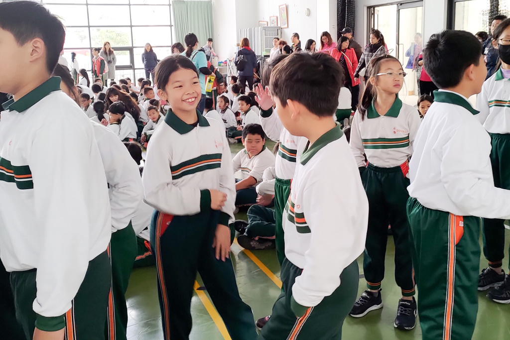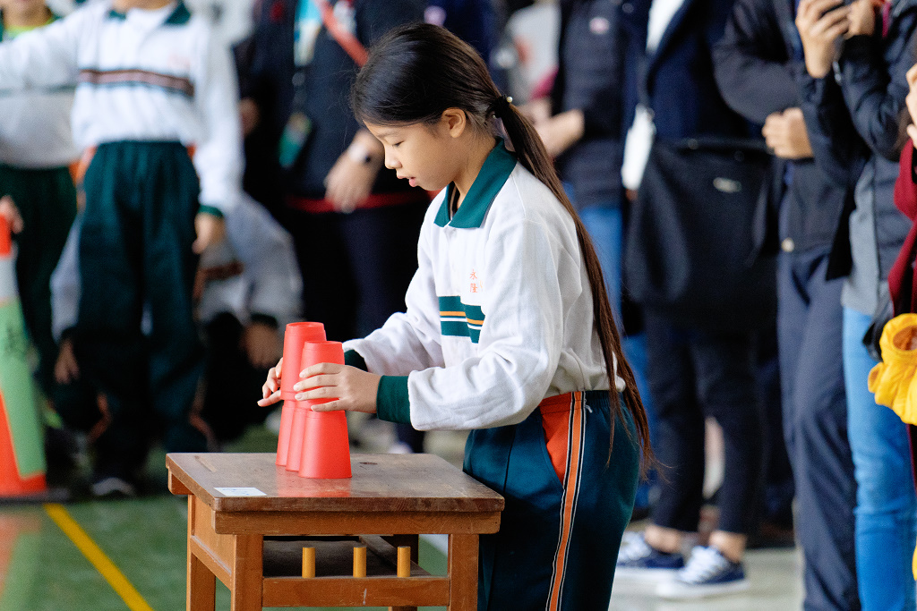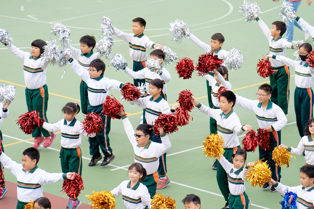 #41 林家姊姊的班級獲得趣味競賽第一名、大隊接力第一名、運動總錦標第二名,導師興奮地把錦旗綁在班旗上。
