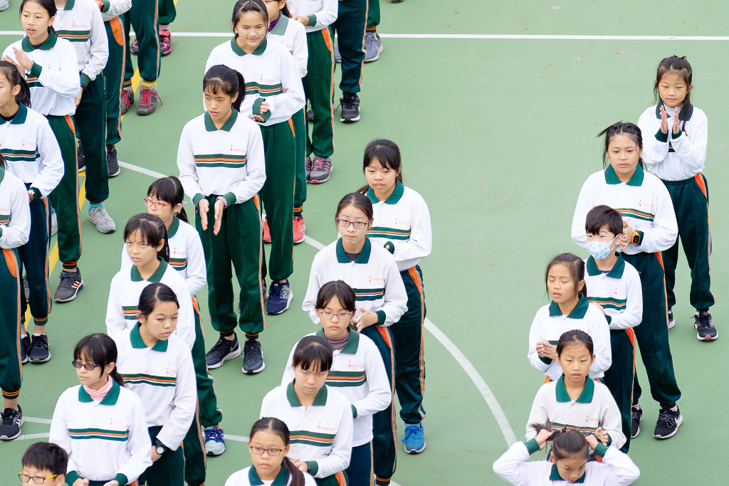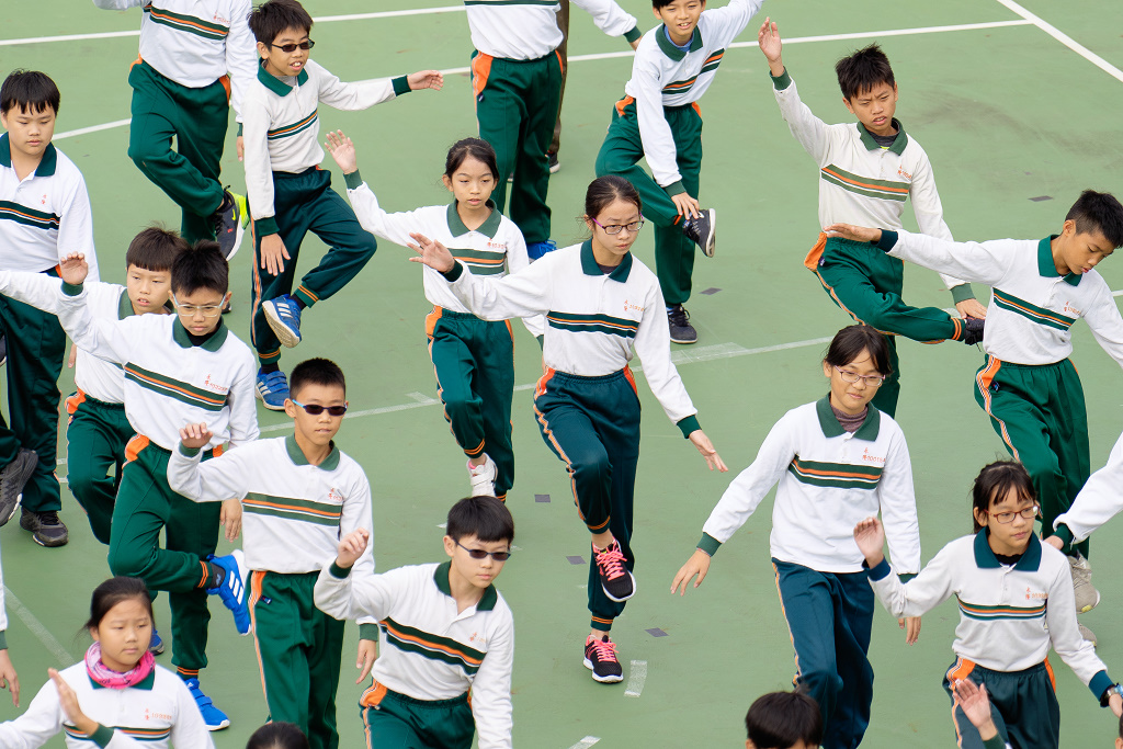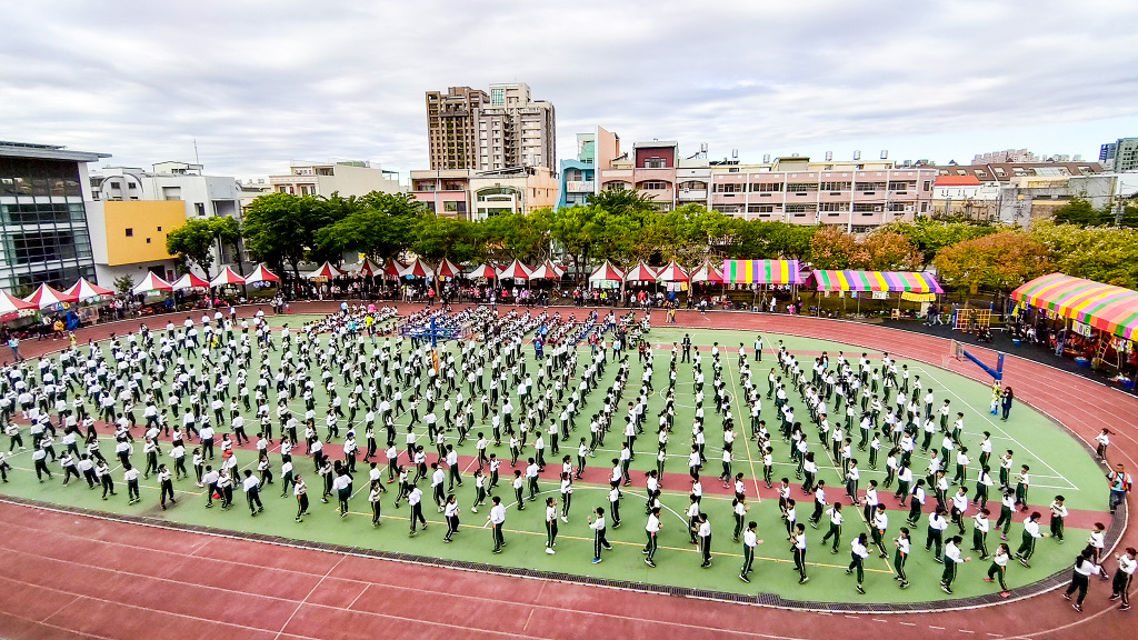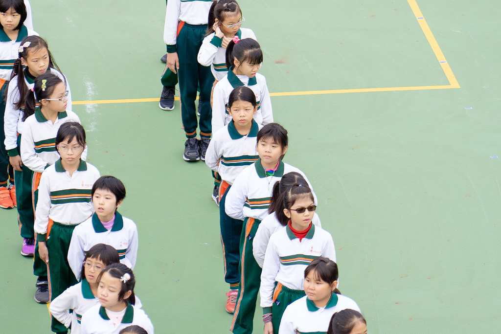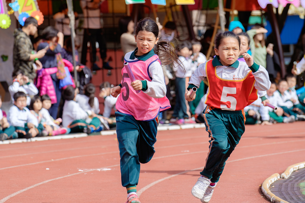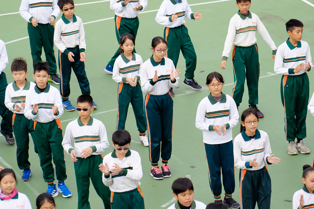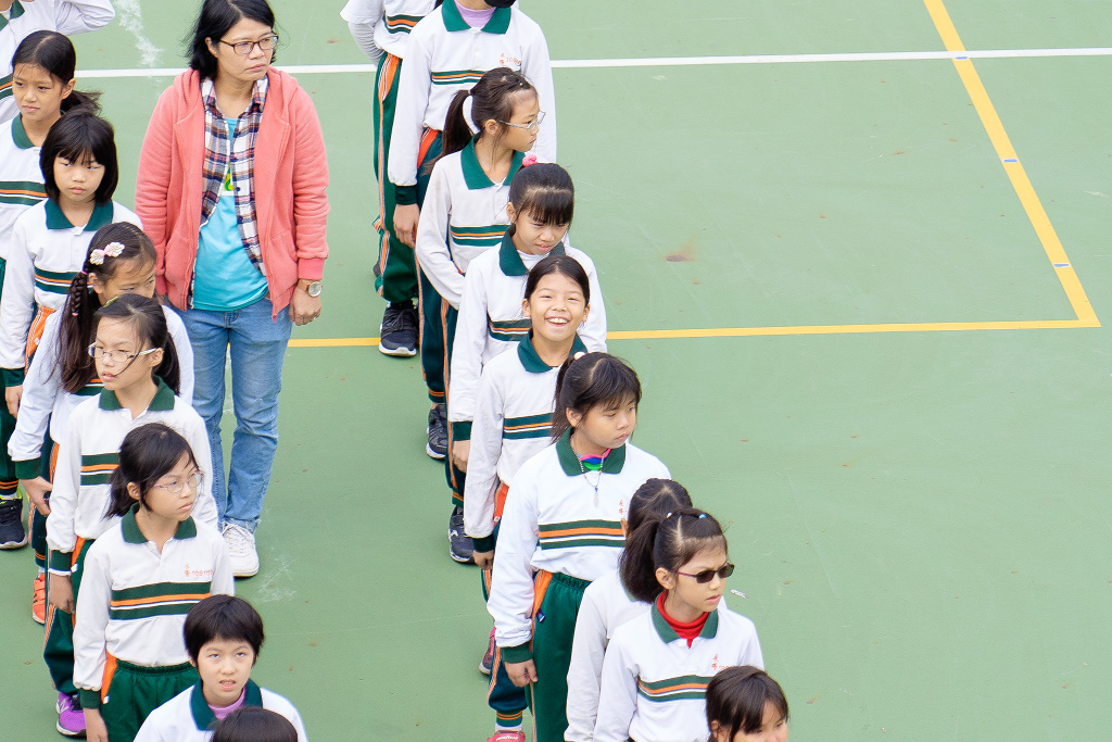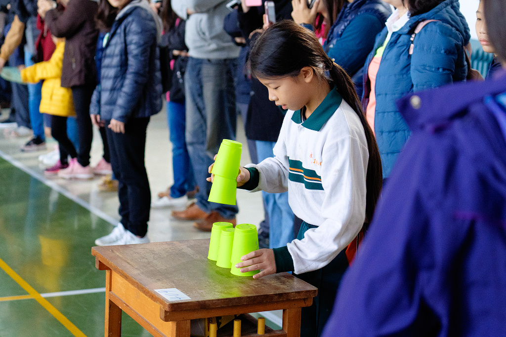 #41 林家姊姊的班級獲得趣味競賽第一名、大隊接力第一名、運動總錦標第二名,導師興奮地把錦旗綁在班旗上。