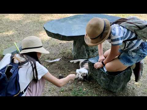 #38 林家姊妹和這隻貓玩了很久,甚至吃完午餐之後又回來找牠玩。