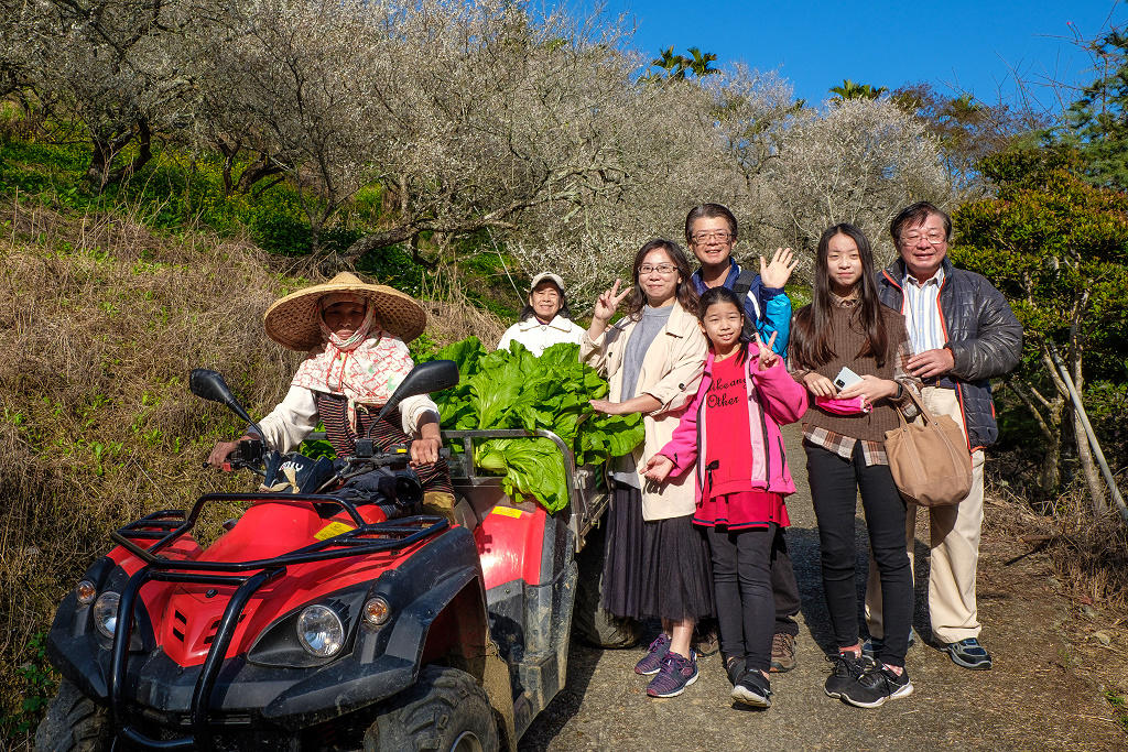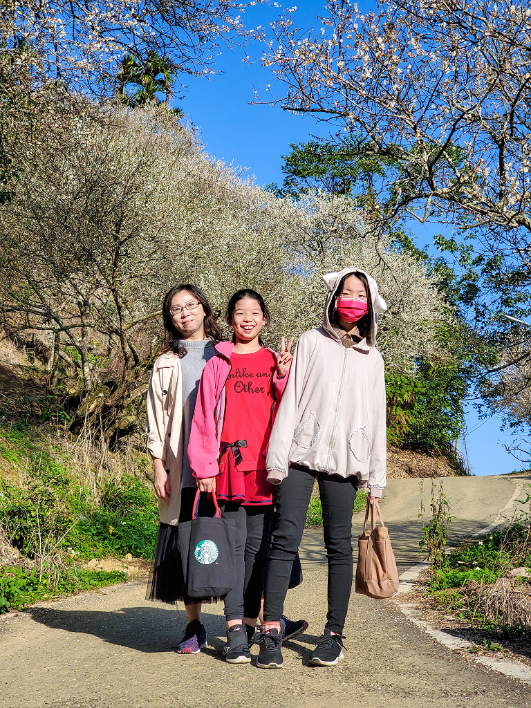 很用力地抱怨一下先…在地人跟我們說今年因為梅況不錯,遊客非常多,顧及山區道路狹小,鄉公所派員單向交通管制,但是只管制了三週,我們來的這一週梅況最好,遊客爆多,卻偏偏沒有管制,所以造成原本就非常狹窄,只容一台車行駛的產業道路,上山下山的車輛全都塞在一起,進退不得,不時有遊客口角糾紛,會車險象環生。雖然我們家是早鳥組,早上八點就已經抵達九尖茶廠,車子順利停在茶廠門口下方,這時賞梅區只有三三兩兩的賞梅遊客,不過等到我們要離開的時候,山路已經全部塞住了,無人指揮的情況下,不管要往哪個方向都行不通……Orz