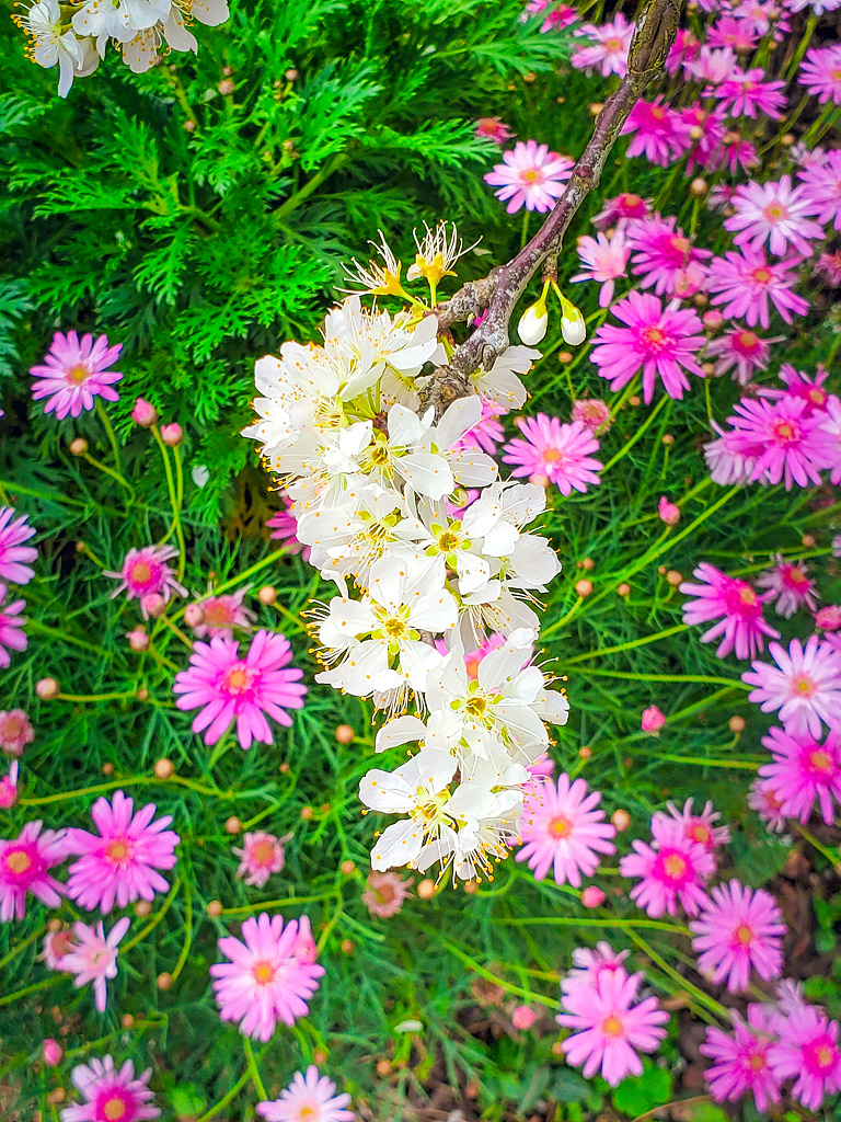 #35 李花、櫻花同時綻放,紅白相映成趣。