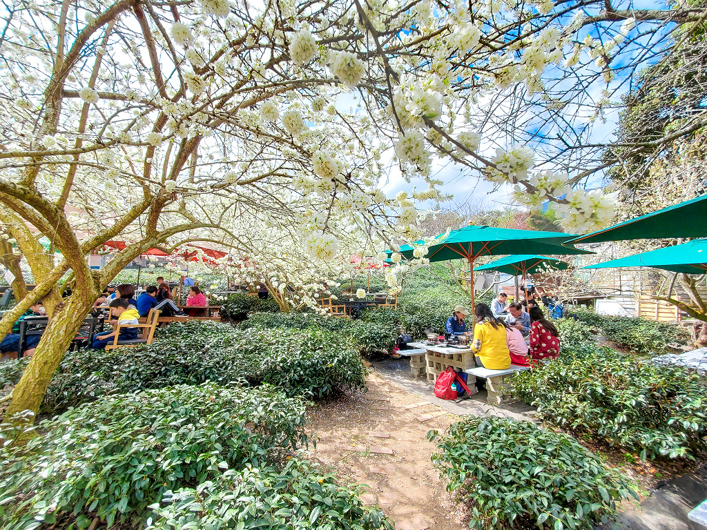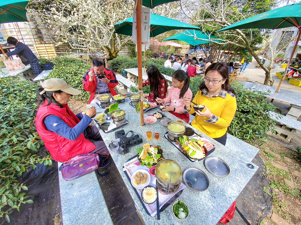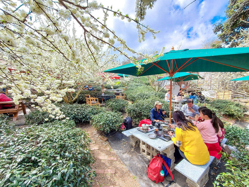 #51 我們早早就預約了這家茶園小火鍋的午餐(沒預約要等很久喔...),坐在李花樹下吃火鍋,景致超好,很浪漫。