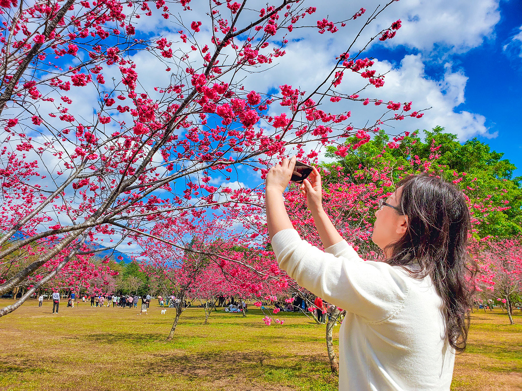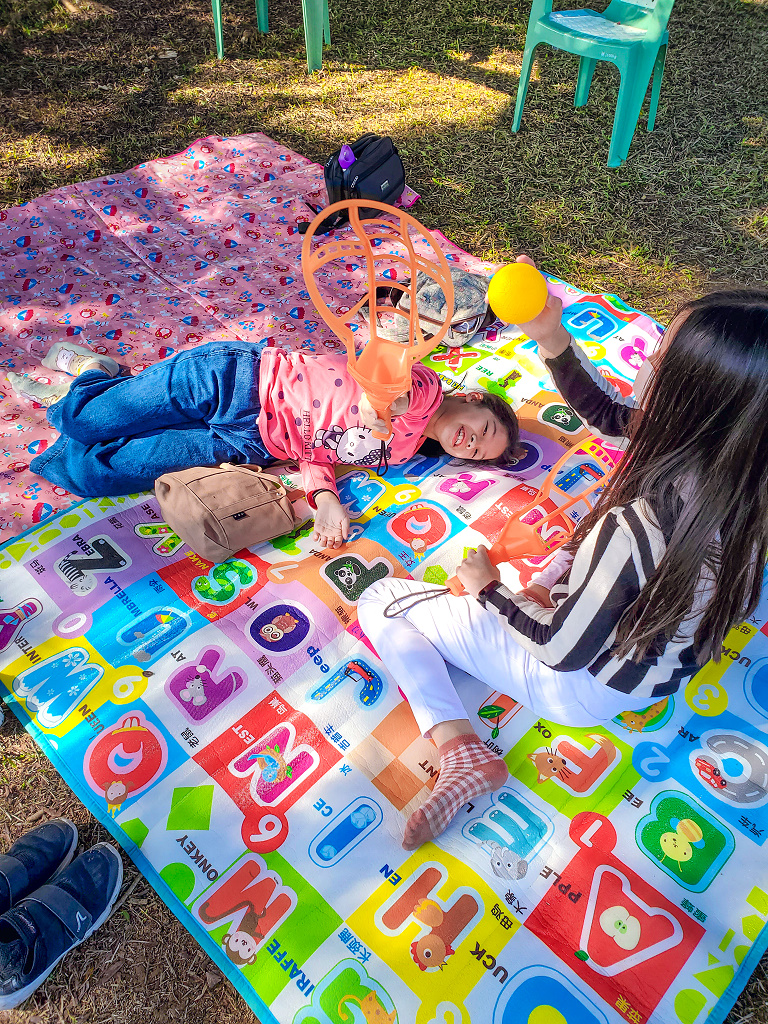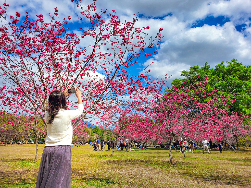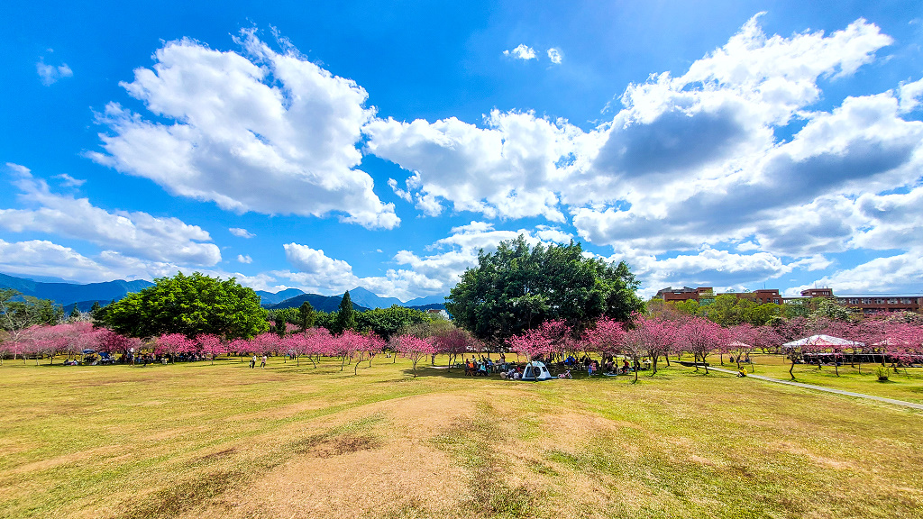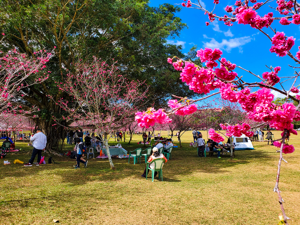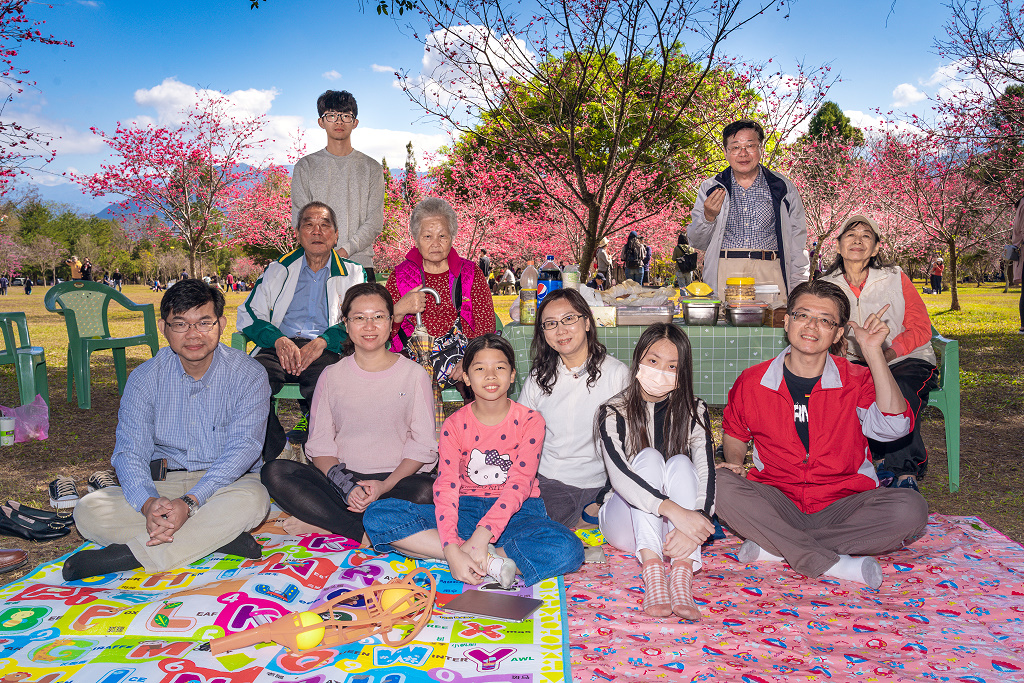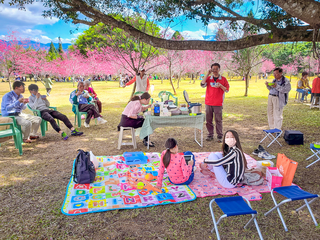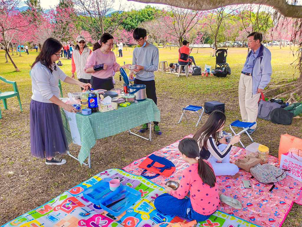 櫻花樹下野餐,微風輕拂好愜意,吃吃喝喝聊聊天,一整個輕鬆的氛圍。