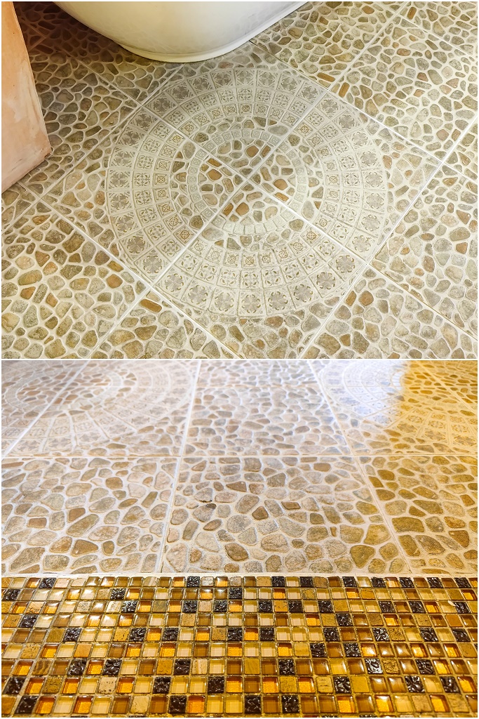 #75 浴室地上的磁磚很漂亮。