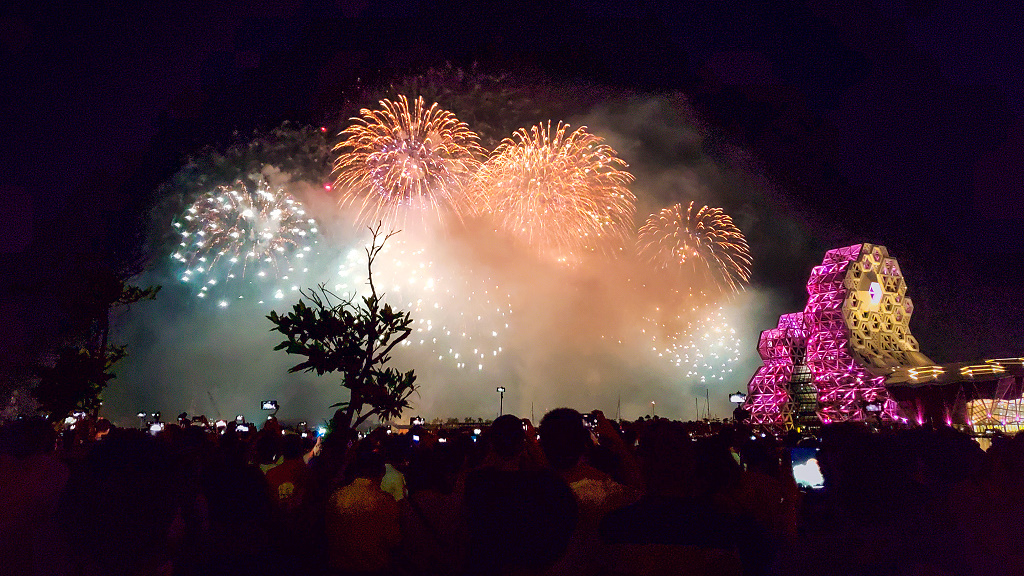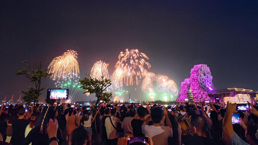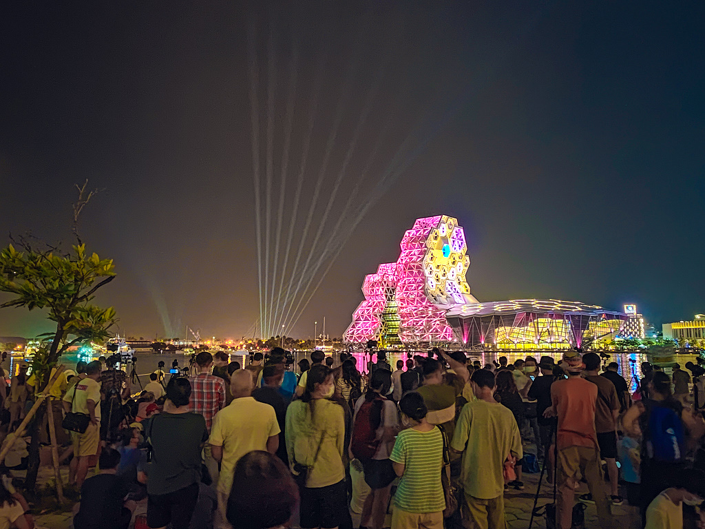 #83 國慶煙火在高雄,從旅店走約600公尺就可以抵達光榮碼頭,現場人山人海啊!(照片日期為10月10日當晚8點)