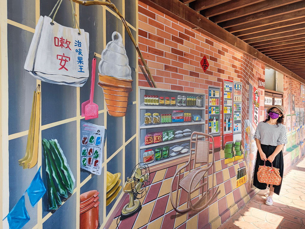 這裡也將大村特產如西瓜、香蕉、巨峰葡萄、四季芒果等融入其中,讓遊客對大村能夠更加認識,而這裡也不僅僅是彩繪而已,也選用了馬賽克磚拼貼的方式,就像是小時候每個人家中的馬賽克裝飾般,帶領旅人回到了最熟悉的年代。