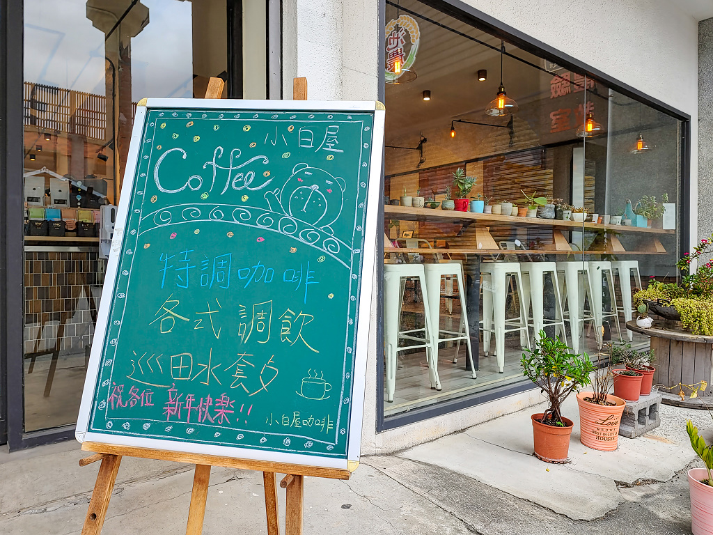 #44 「小白屋咖啡」為園區內歷史最悠久的建築物,過去曾為辦公室及地磅,經過設計後成為美麗的咖啡廳,腳下隔著透明玻璃的地磅、工業風格燈具、露出紅磚的樑柱以及時尚風格座椅,別出心裁的設計讓到訪的遊客眼睛都為之一亮,店內除了一般喝的到的美式、拿鐵咖啡,也提供茶、醋、冰沙、蛋糕、餅乾、鬆餅等餐點。
