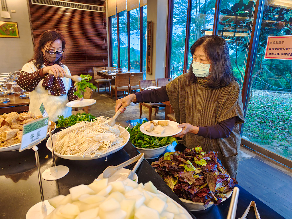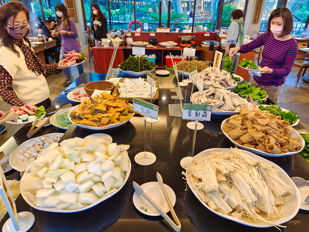 #86 園區內的「養生汆燙鍋餐廳」主打每天現採無毒蔬菜,以獨家多種養生藥膳為湯底,加上養生醬料、養生食材,品嚐最天然的美味。沒想到好多人真的大老遠跑來深山林內的植物園只為了火鍋吃到飽(強烈建議一定要預約),這裡可以吃到很多少見的蔬菜,當然也可以肉肉吃到飽啦~