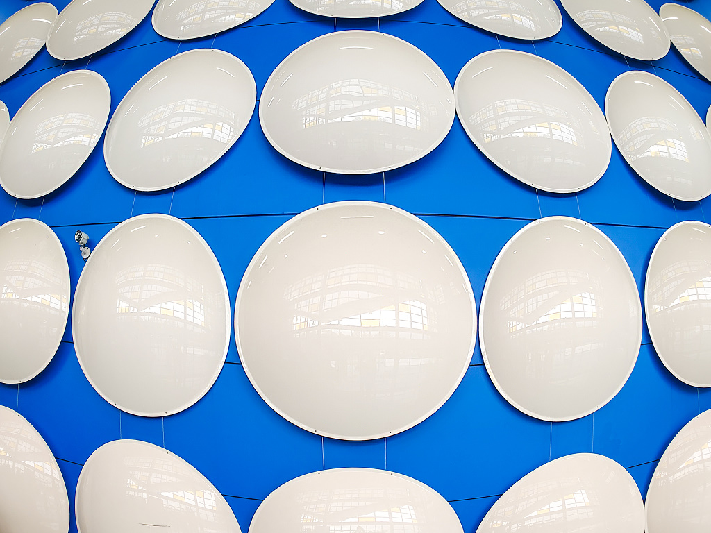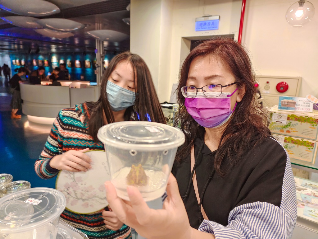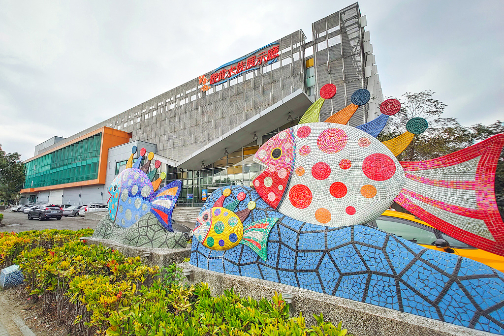 館前三隻雕刻魚為日本知名藝術家草間彌生唯一戶外魚的作品。