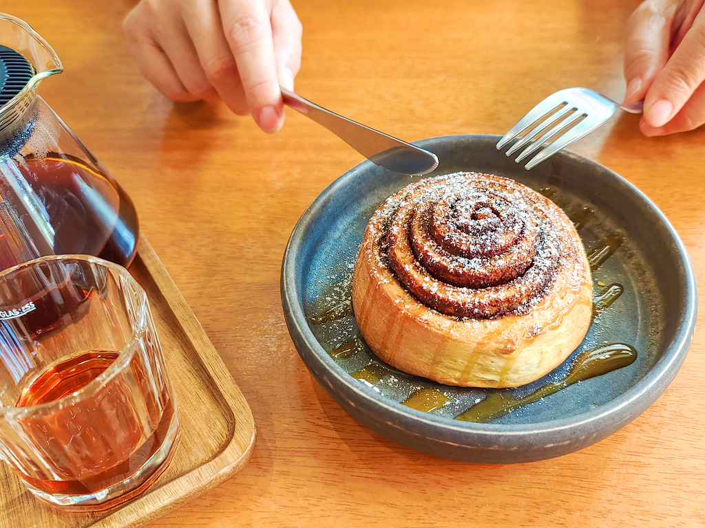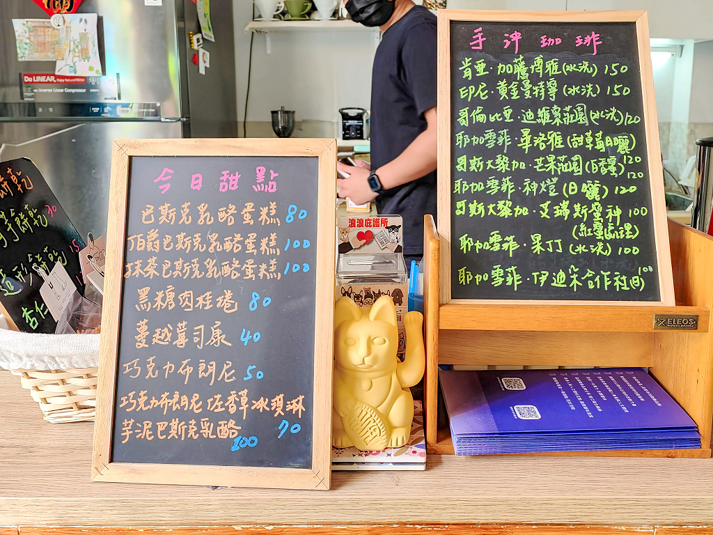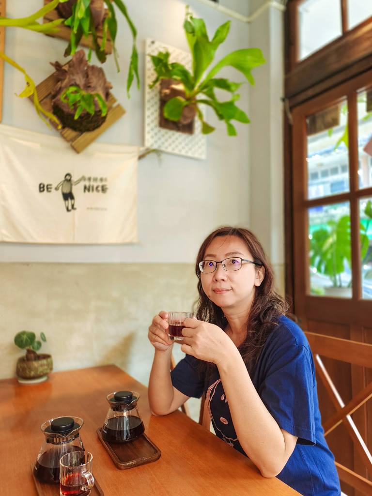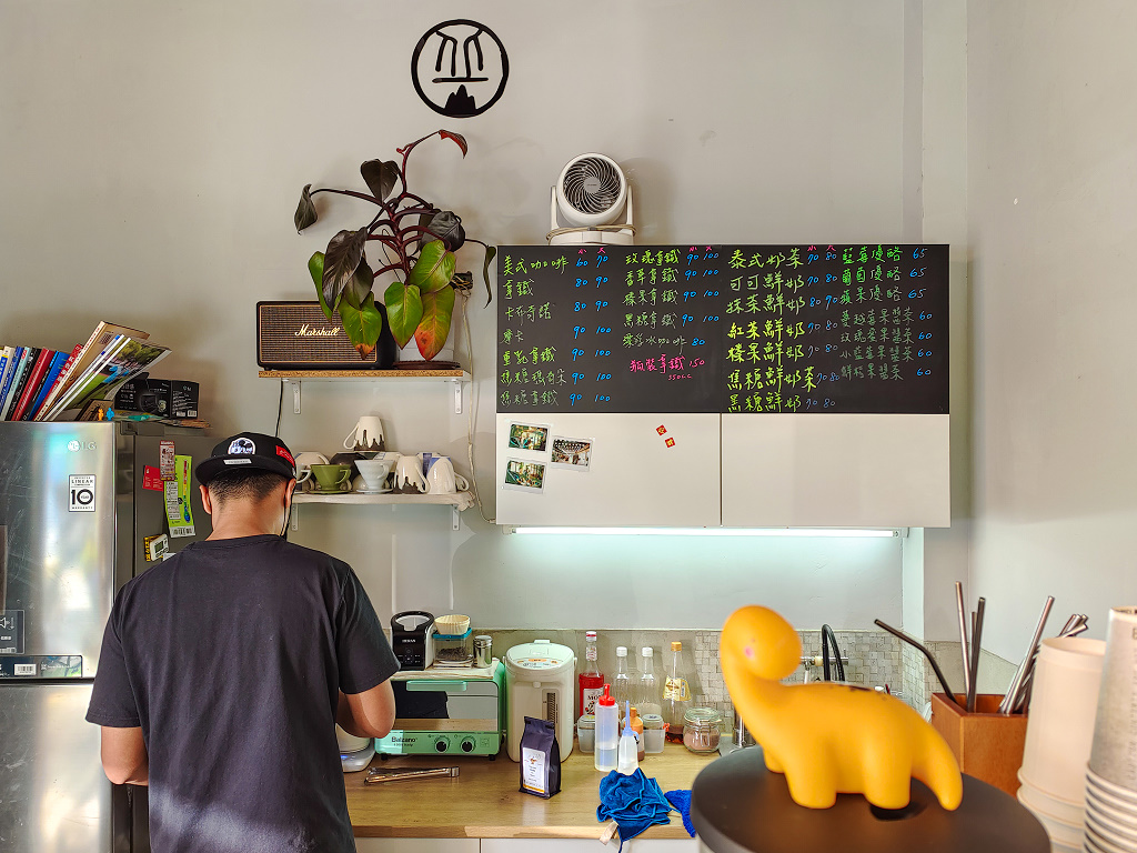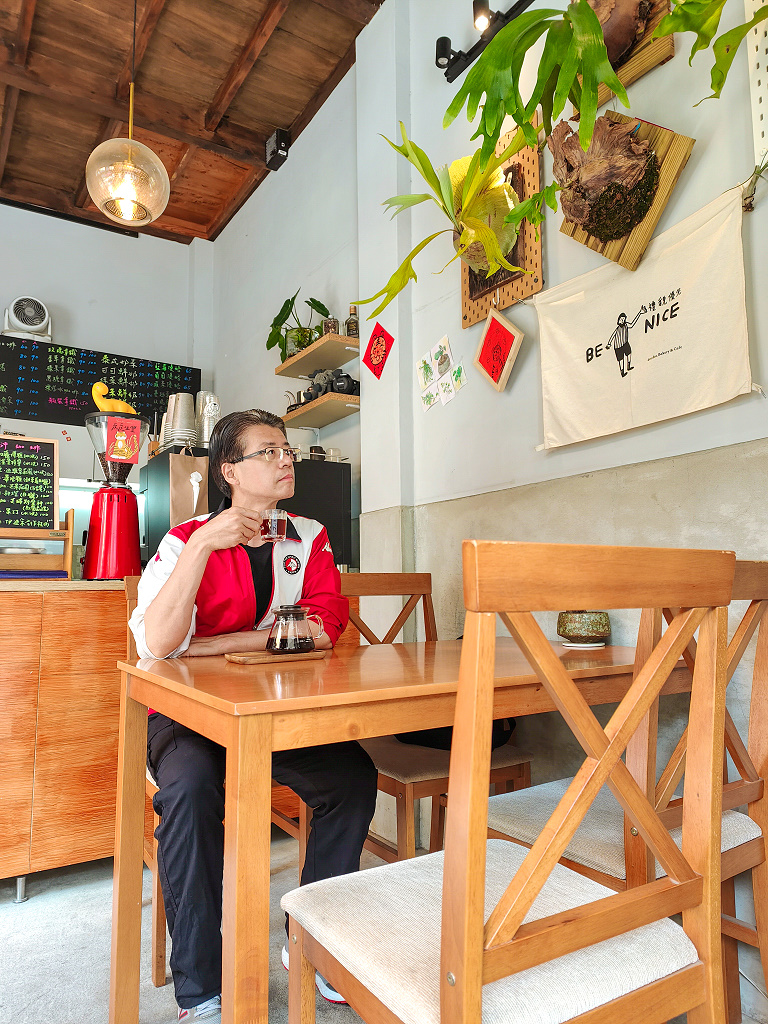 我們點了幾杯咖啡、飲料,還有甜點,只見年輕帥氣的植物系老闆(他自稱的)緩緩地磨豆子、沖咖啡、做飲料、準備甜點,一副悠然自得的模樣,看來我們有很足夠的時間在這裡好好拍照。