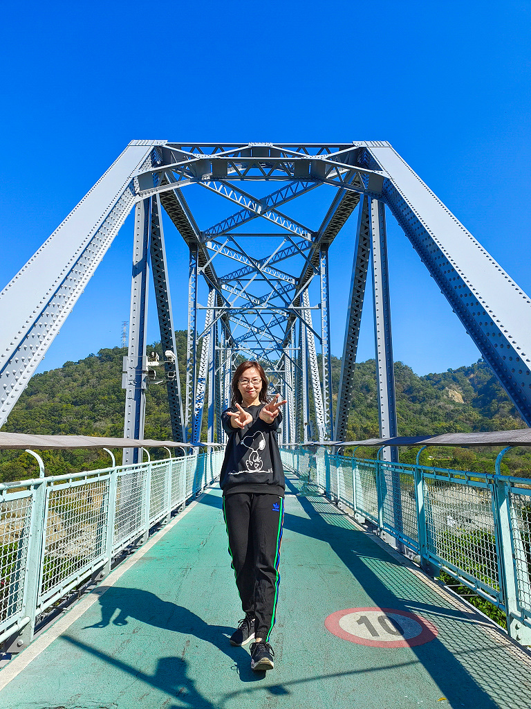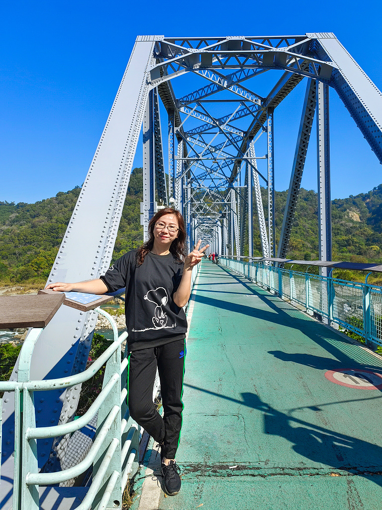 #2 「花梁鋼橋」建於日治時代(明治41年) 1908年完工,其下部結構是混凝土砌塊石沉箱,橋座是磚角石構成,為罕見之交通工藝品。站在遠處觀望,立即能感受到它的氣勢雄偉。「花梁鋼橋」亦處臺鐵舊山線最南端的景點,全長382公尺,每兩個橋墩上都有一組俗稱花梁的鋼製桁架,為結合力與美的工程作品。