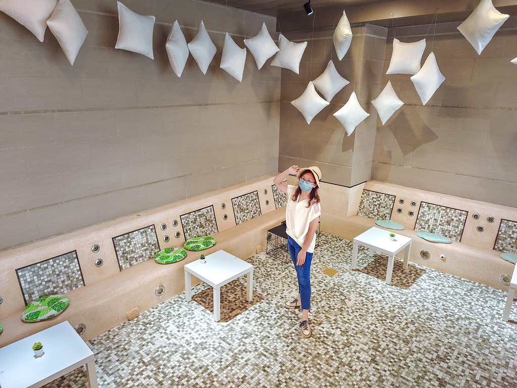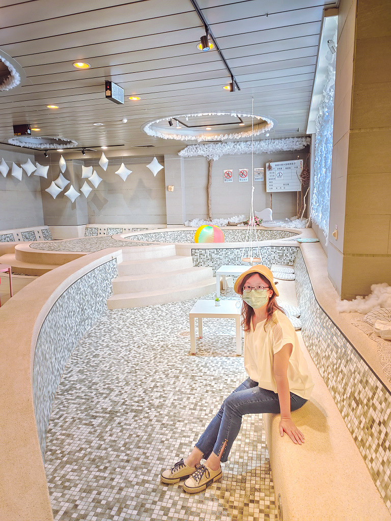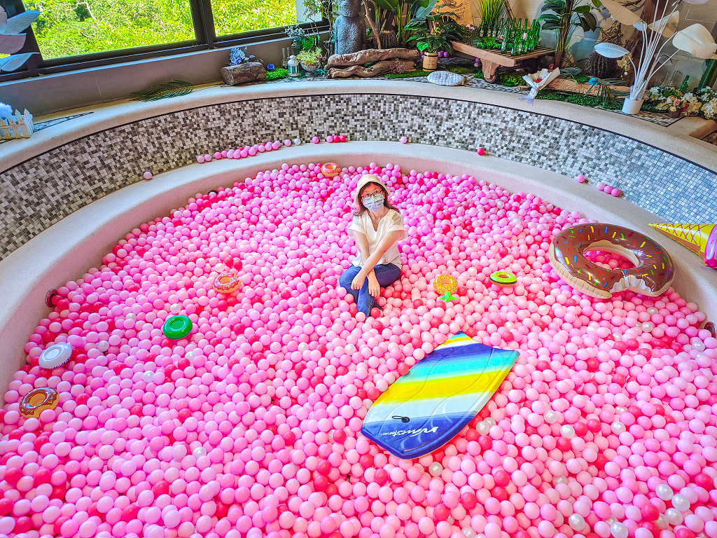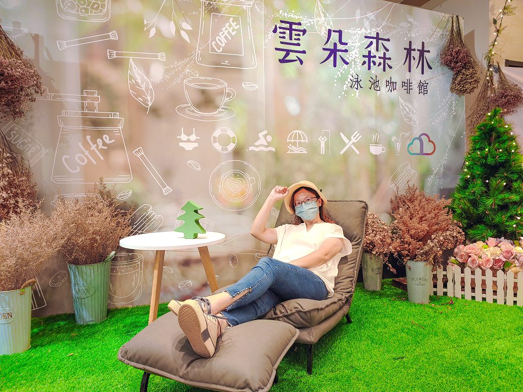 「雲朵森林x泳池咖啡」於2021年4月1日開幕,原為四季山莊的泳池會館,改裝後保留會館內的SPA池、泳池、三溫暖烤箱等,加上許多精心的裝飾擺設,變成獨樹一幟的用餐空間,最棒的是還有設計兒童遊戲區,讓愛攝影的家長也可以帶小朋友來用餐兼拍美照。
