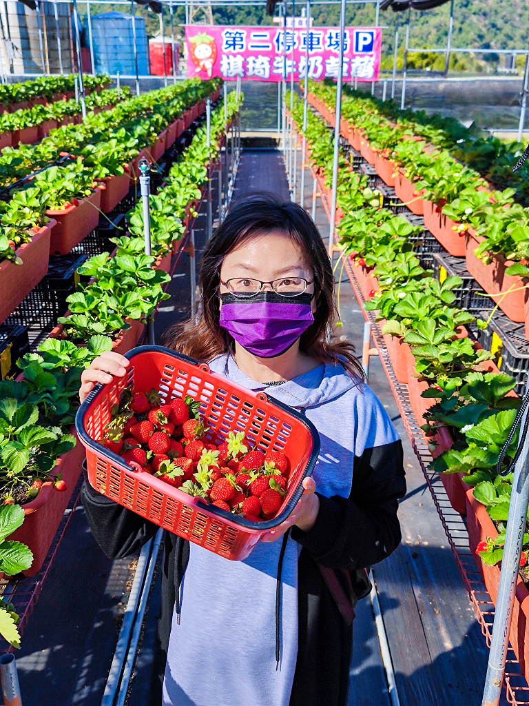 「棋琦牛奶草莓園」並不在大湖台三線的草莓一級戰區(那邊人太多了),而是位於苗62線往清安豆腐街、泰安溫泉的路上,山路比較小,會車要注意,但是山景很漂亮,空氣也很棒。