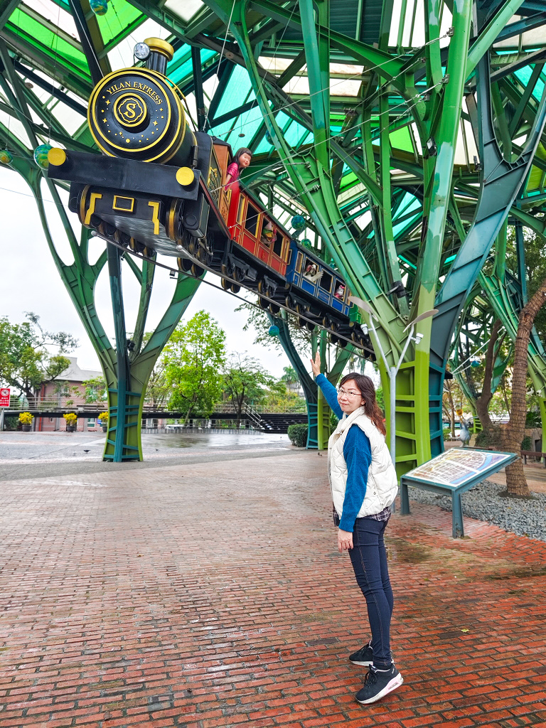 位於宜蘭火車站正對面的「丟丟噹森林」擁有九株由黃聲遠建築師設計,高達14公尺的巨型鋼構「樹木」,除展現自然氣息且象徵九芎樹之外,正好同宜蘭舊名「九芎城」之意象,目前做為百果樹藝文空間。