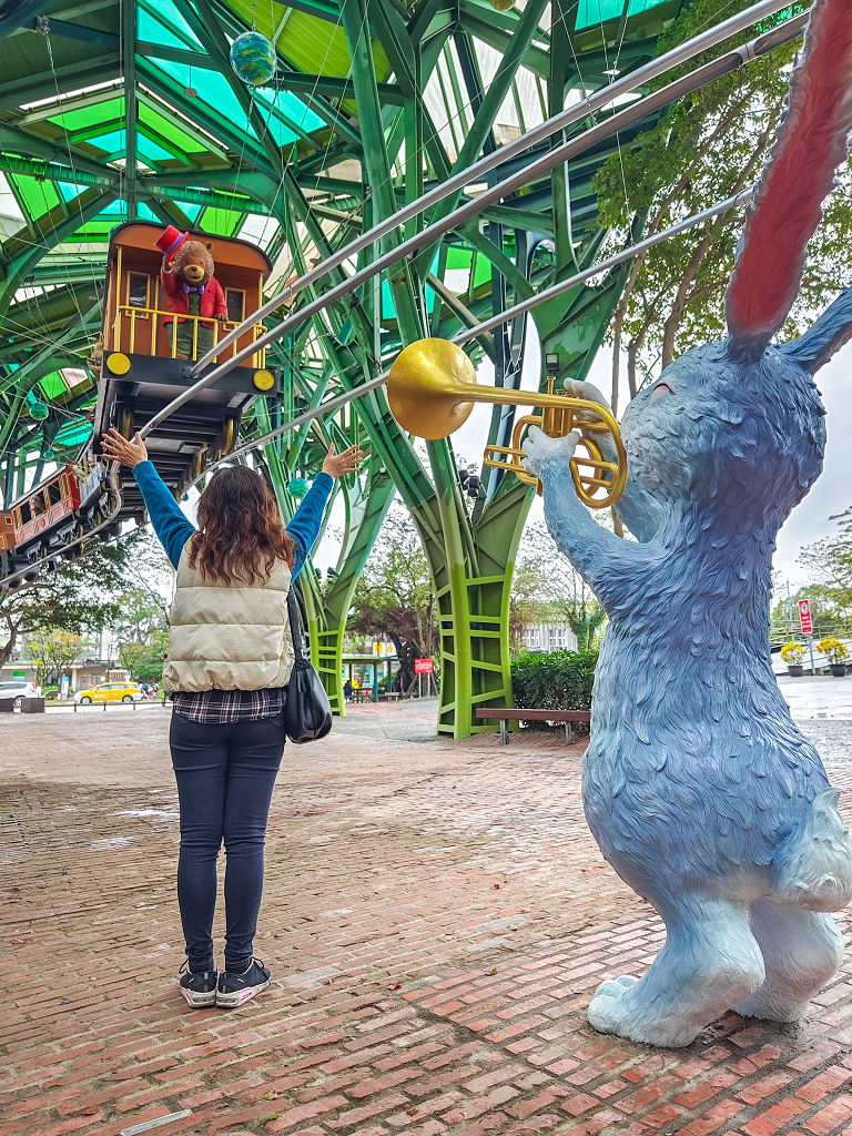 繼宜蘭火車站南側廢棄舊宿舍改建,並打造成為全台第一座以幾米繪本場景為主的幾米主題廣場以來,不僅吸引遊客前往拍照打卡,更讓幾米粉絲為之瘋狂,為此,宜蘭縣政府特別將幾米創作延伸至火車站前,以及距火車站步行約5分鐘的幸福轉運站,而丟丟噹森林裡之造景即為幾米繪本「星空」裡的飛天列車。