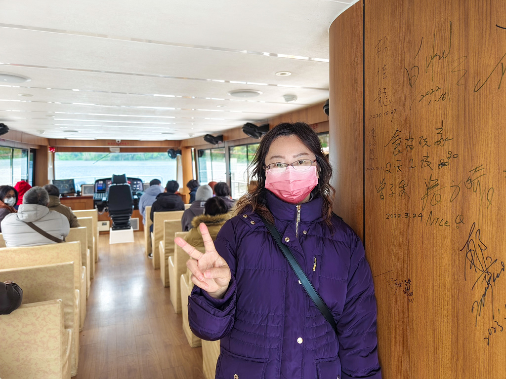 航程約30分鐘,全程豐富導覽解說,欣賞細茅埔吊橋、彌勒大佛、湖中小島、候鳥生態區等景點,這天雖然超級冷,但是風景真的很漂亮!