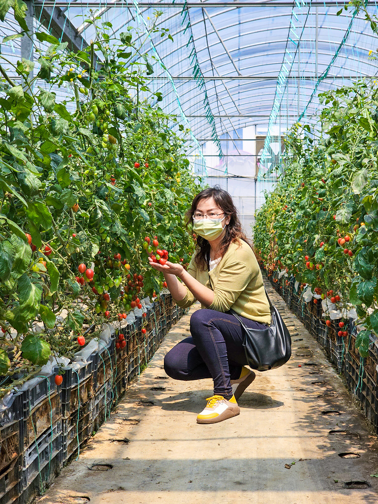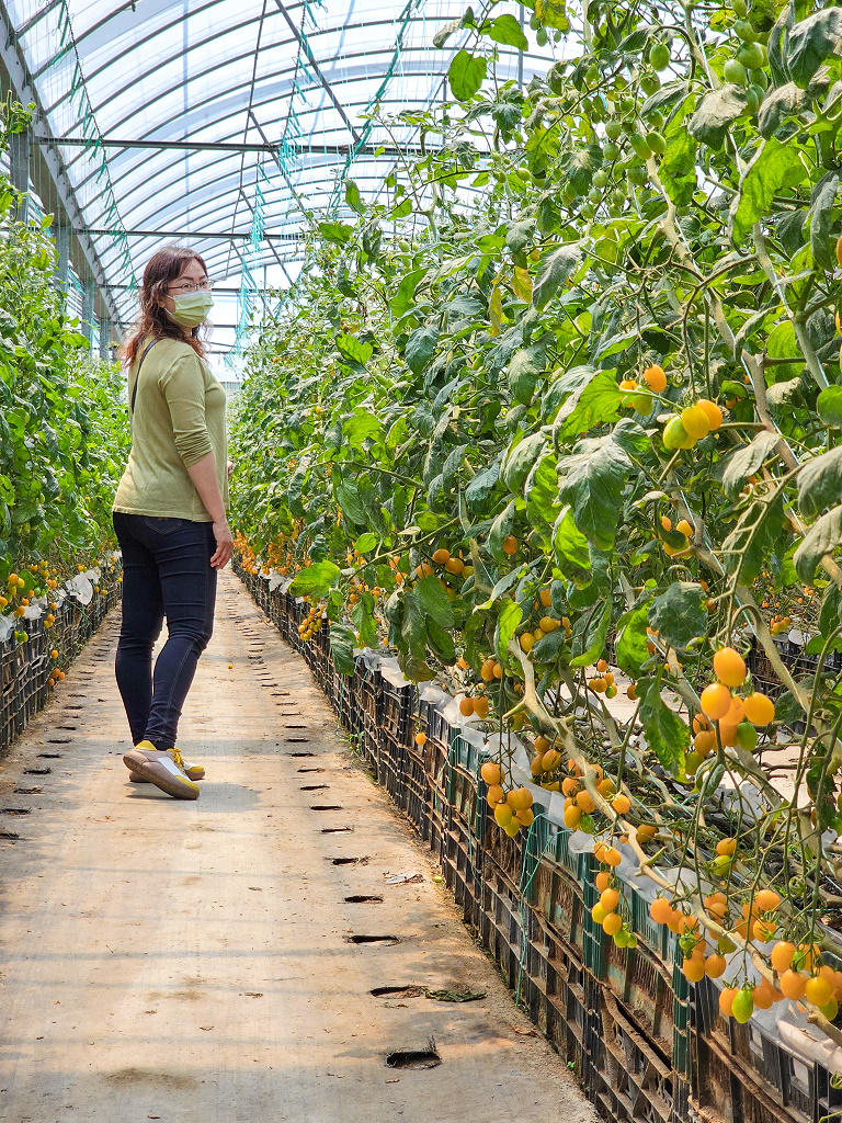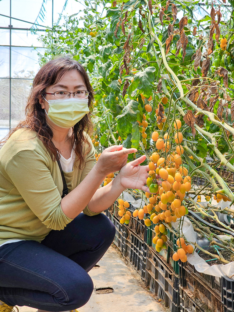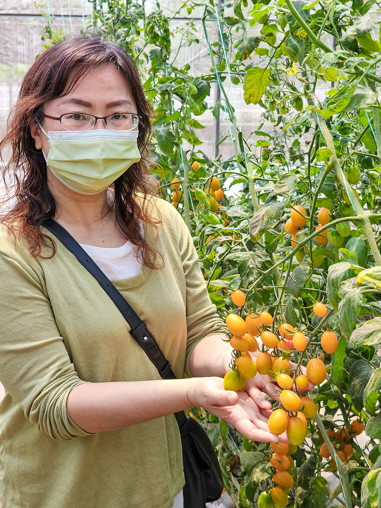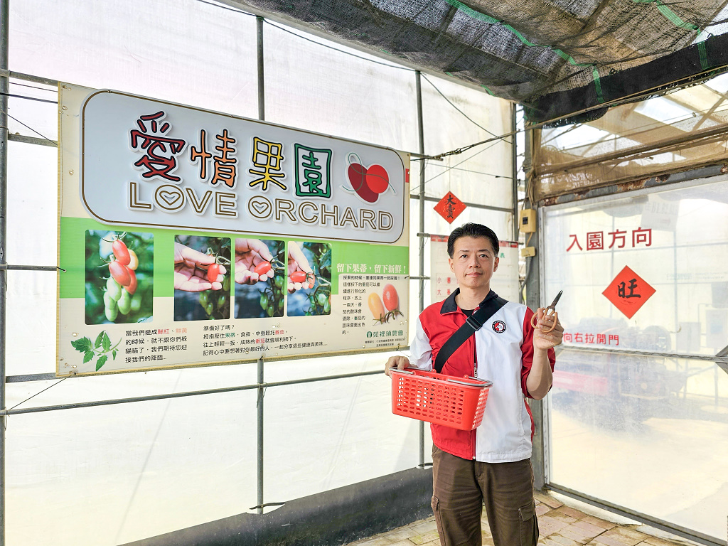 苑裡鎮農會的「愛情果園」就位在藺草文化館對面,以種植番茄為主(也有彩椒與小黃瓜),果園所採用的溫室形態是在許多溫室中特地挑選出來的,因為考量台灣季節的變化,在夏季一般溫室內會形成溫度的聚集現象,而高溫對於室內栽培的作物,會造成結果困難的情況,尤其是番茄這種作物。所以,當初在做溫室形態選擇的時候,即需尋求可以降溫、散熱方便的設計,當時便選了屋頂捲揚式的結構,它的屋頂設計是整個塑膠布可以捲起至中央的太子樓下面,所以當屋頂捲起的時候,上面只剩一層細網,熱能就不會累積在室內,因此內外的溫差大約在兩度上下,再加上有裝設排風扇,萬一裡面熱導流循環不佳時,排風扇作用後,溫度會很快受到控制。