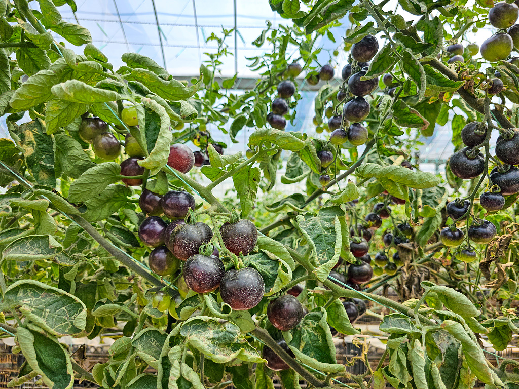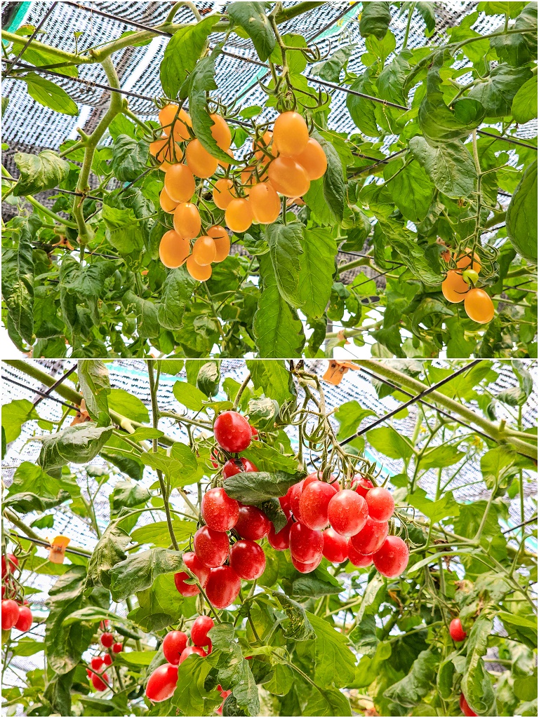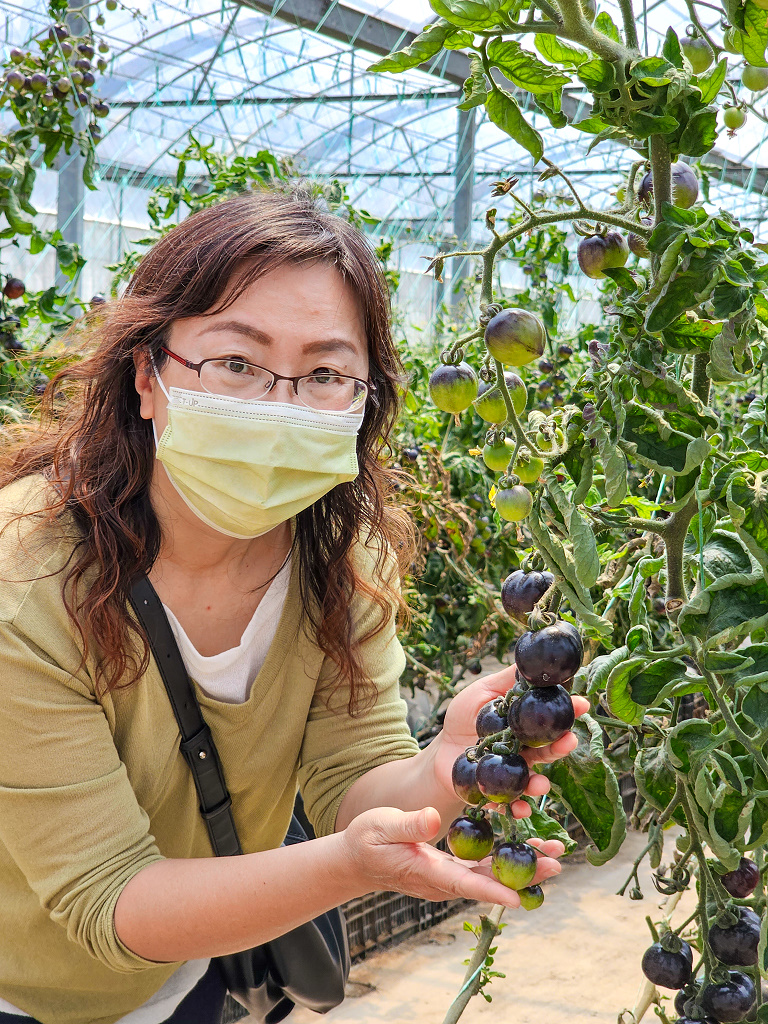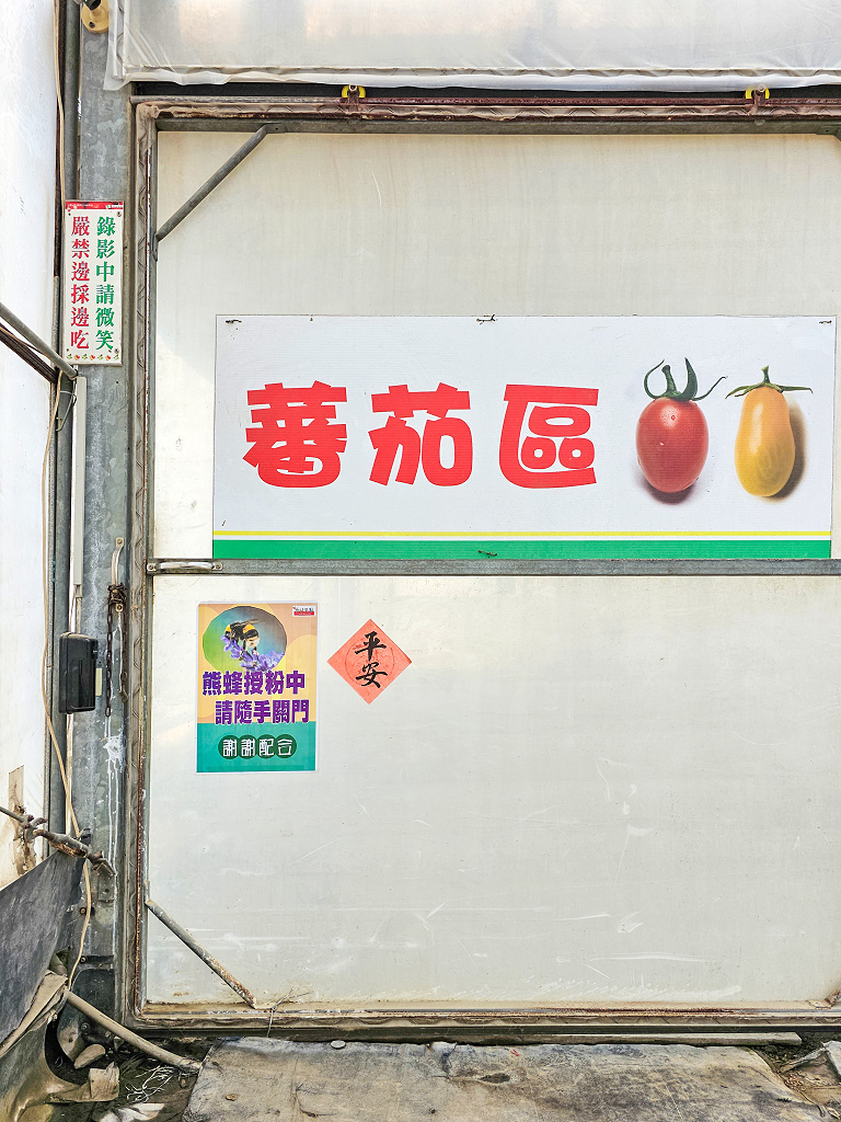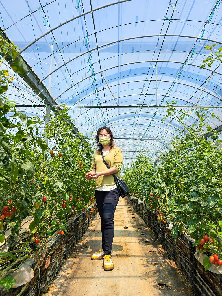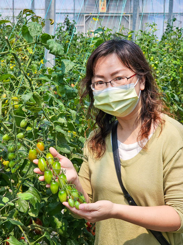 苑裡鎮農會的「愛情果園」就位在藺草文化館對面,以種植番茄為主(也有彩椒與小黃瓜),果園所採用的溫室形態是在許多溫室中特地挑選出來的,因為考量台灣季節的變化,在夏季一般溫室內會形成溫度的聚集現象,而高溫對於室內栽培的作物,會造成結果困難的情況,尤其是番茄這種作物。所以,當初在做溫室形態選擇的時候,即需尋求可以降溫、散熱方便的設計,當時便選了屋頂捲揚式的結構,它的屋頂設計是整個塑膠布可以捲起至中央的太子樓下面,所以當屋頂捲起的時候,上面只剩一層細網,熱能就不會累積在室內,因此內外的溫差大約在兩度上下,再加上有裝設排風扇,萬一裡面熱導流循環不佳時,排風扇作用後,溫度會很快受到控制。