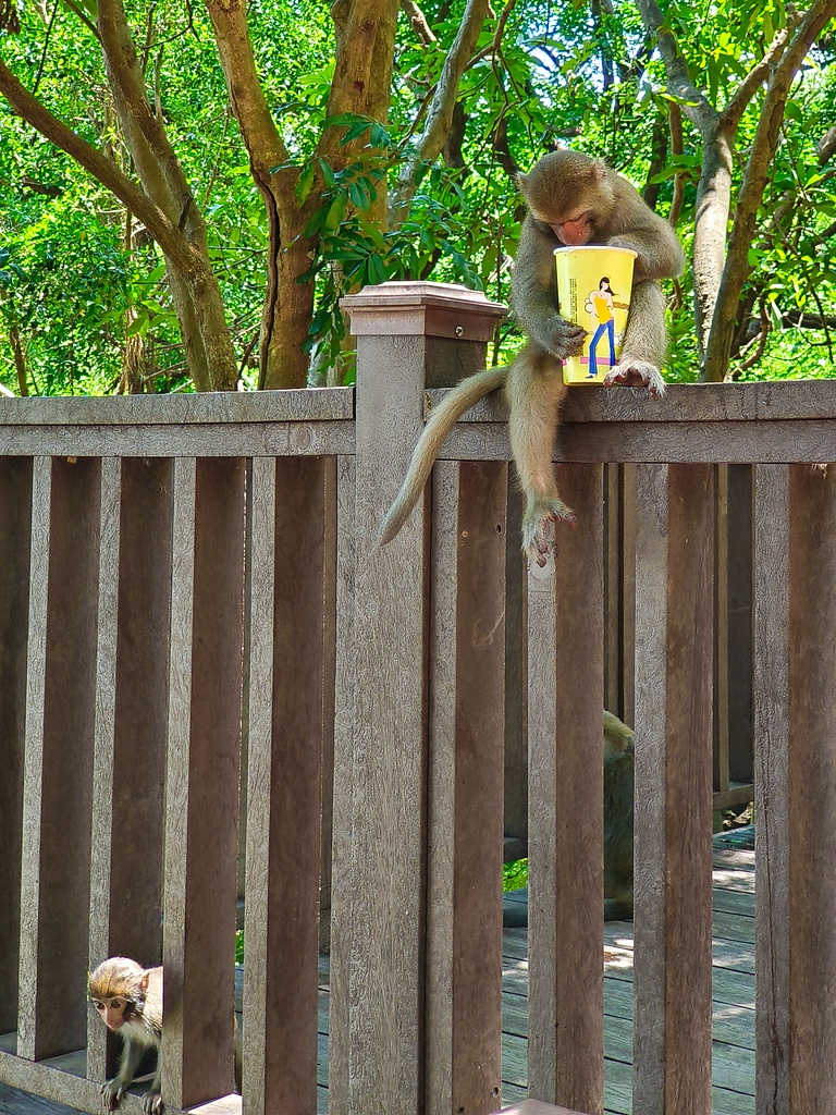 #30 台灣獼猴在我們一大早入園時還沒出現,中午過後離開時才一群一群地待在路旁。